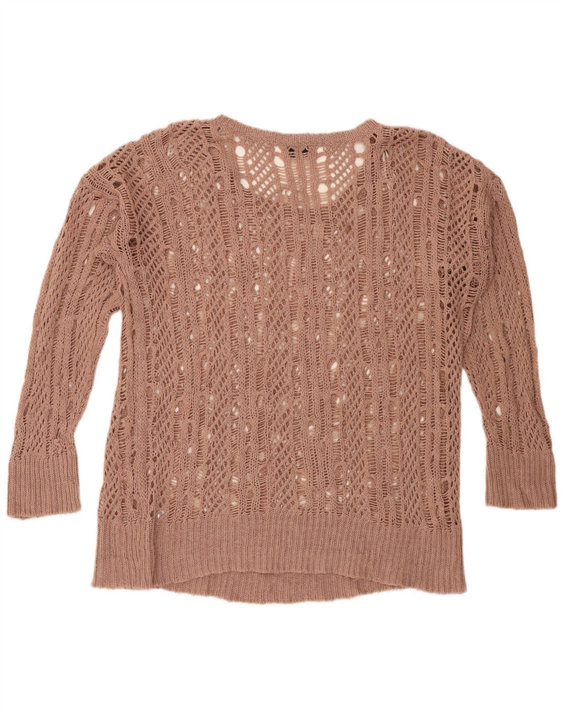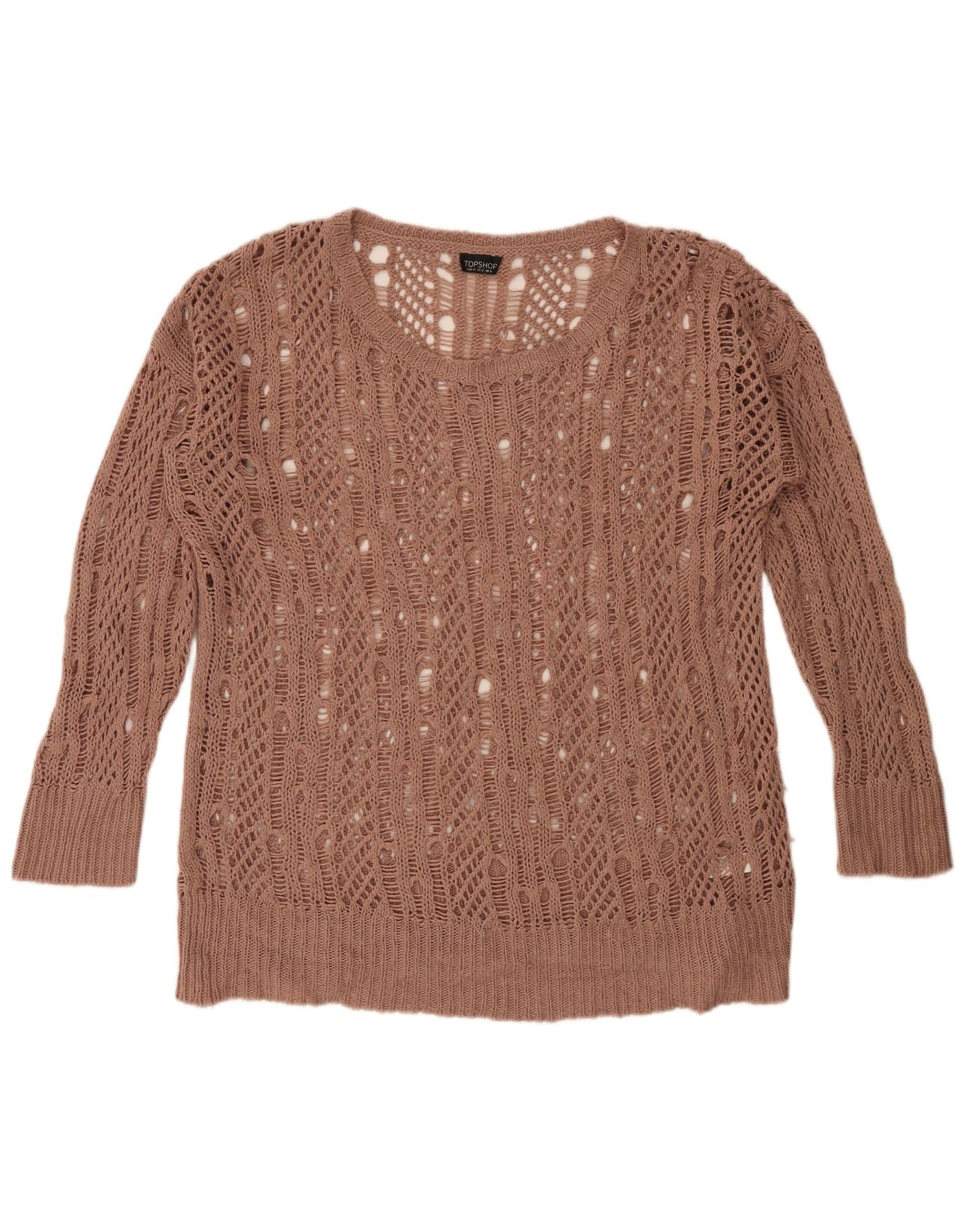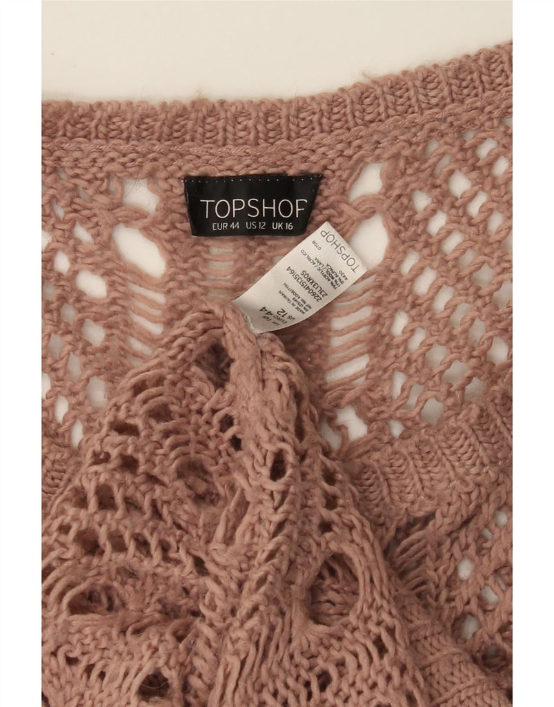TOPSHOP Womens Oversized Crochet Crew Neck Jumper Sweater UK 16 Large Pink