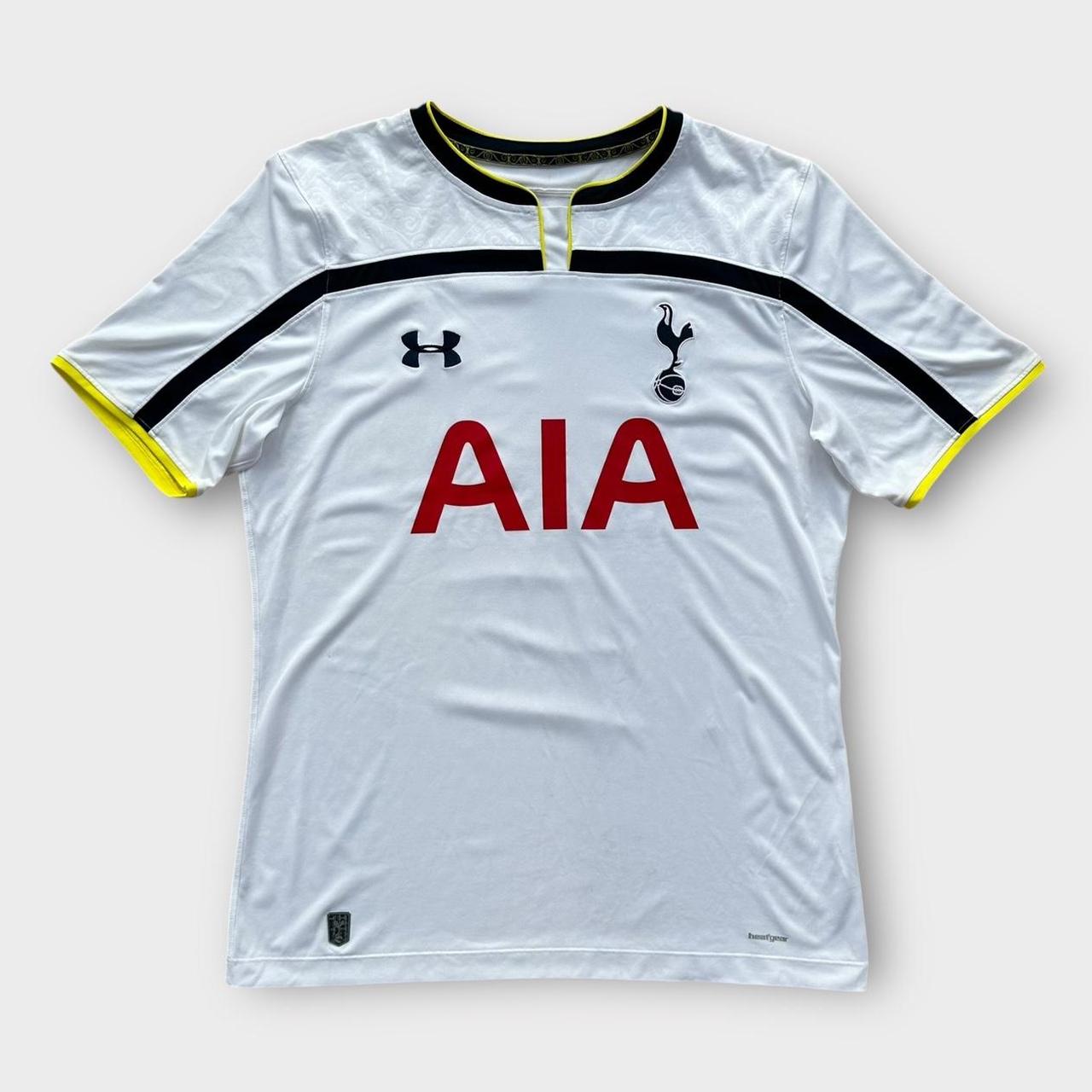 Klasyczna domowa koszulka piłkarska Tottenham marki Under Armour z sezonu 2014/2015 z haftowanymi logami i sponsorem AIA na piersi