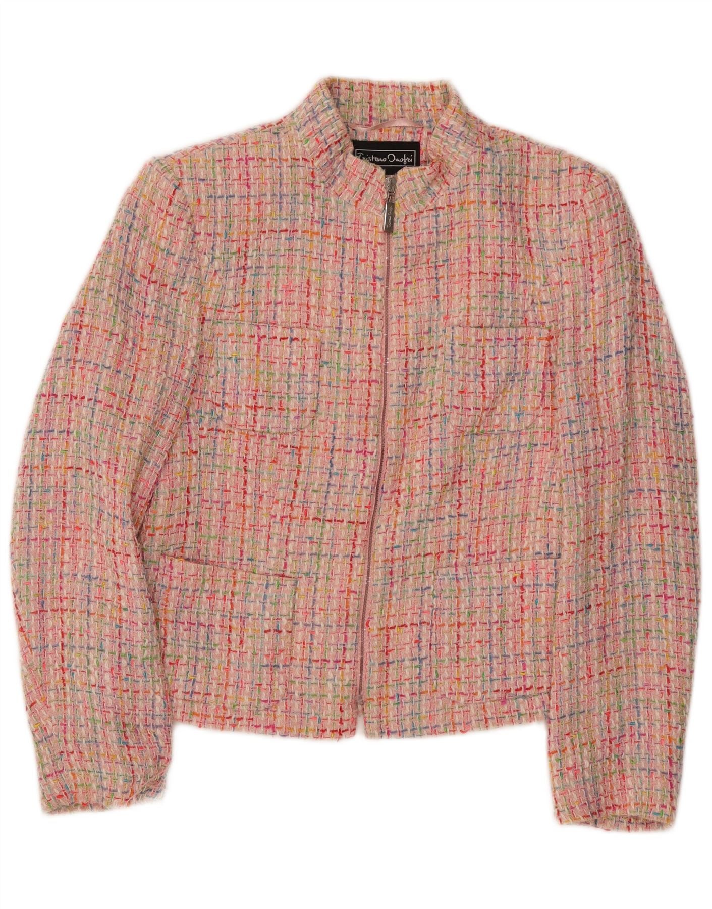 TRISTANO ONOFRI Womens Blazer Jacket UK 12 Medium Pink Check Cotton