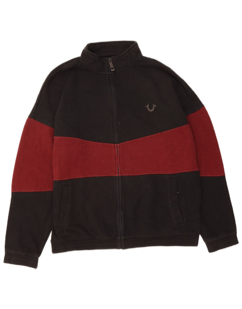 TRUE RELIGION Mens Tracksuit Top Jacket Medium Black Colourblock Cotton