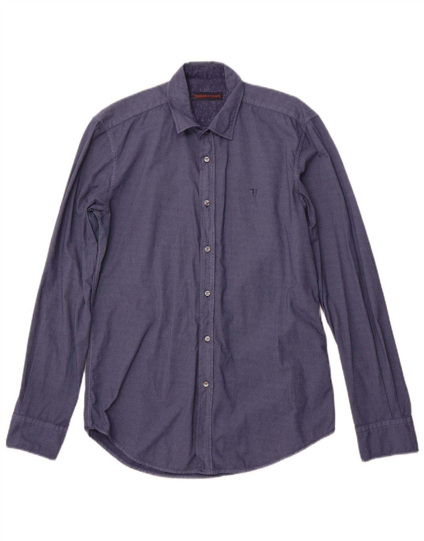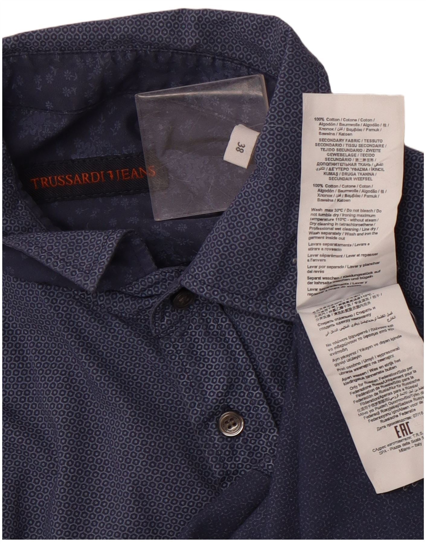 Koszula męska TRUSSARDI JEANS, rozmiar 38, średnia, granatowa, geometryczna bawełna