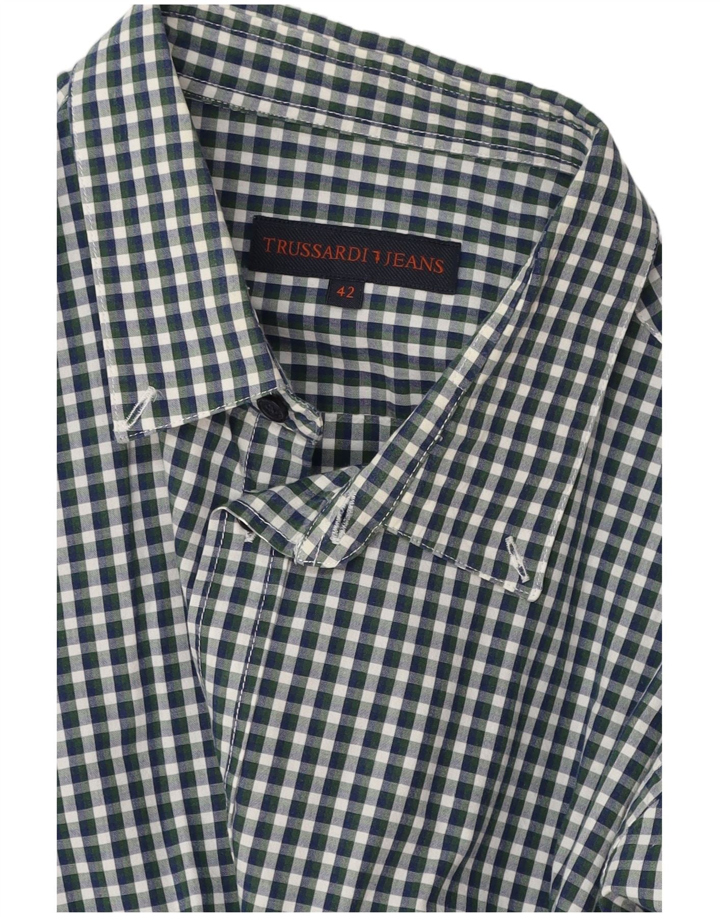 - Opis sztucznej inteligencji: Ta koszula męska Trussardi Jeans jest wykonana z tkaniny o wyrazistej fakturze. Charakteryzuje się klasycznym wzorem w kratkę w kolorze zielonym, granatowym i białym. Dekolt z kołnierzykiem i przód zapinany na guziki zapewniają ponadczasową konstrukcję. Długie rękawy zakończone mankietami zapinanymi na guziki. Regularny krój zapewnia wygodę noszenia i klasyczną sylwetkę. Ta koszula oferuje uniwersalny styl na różne okazje.