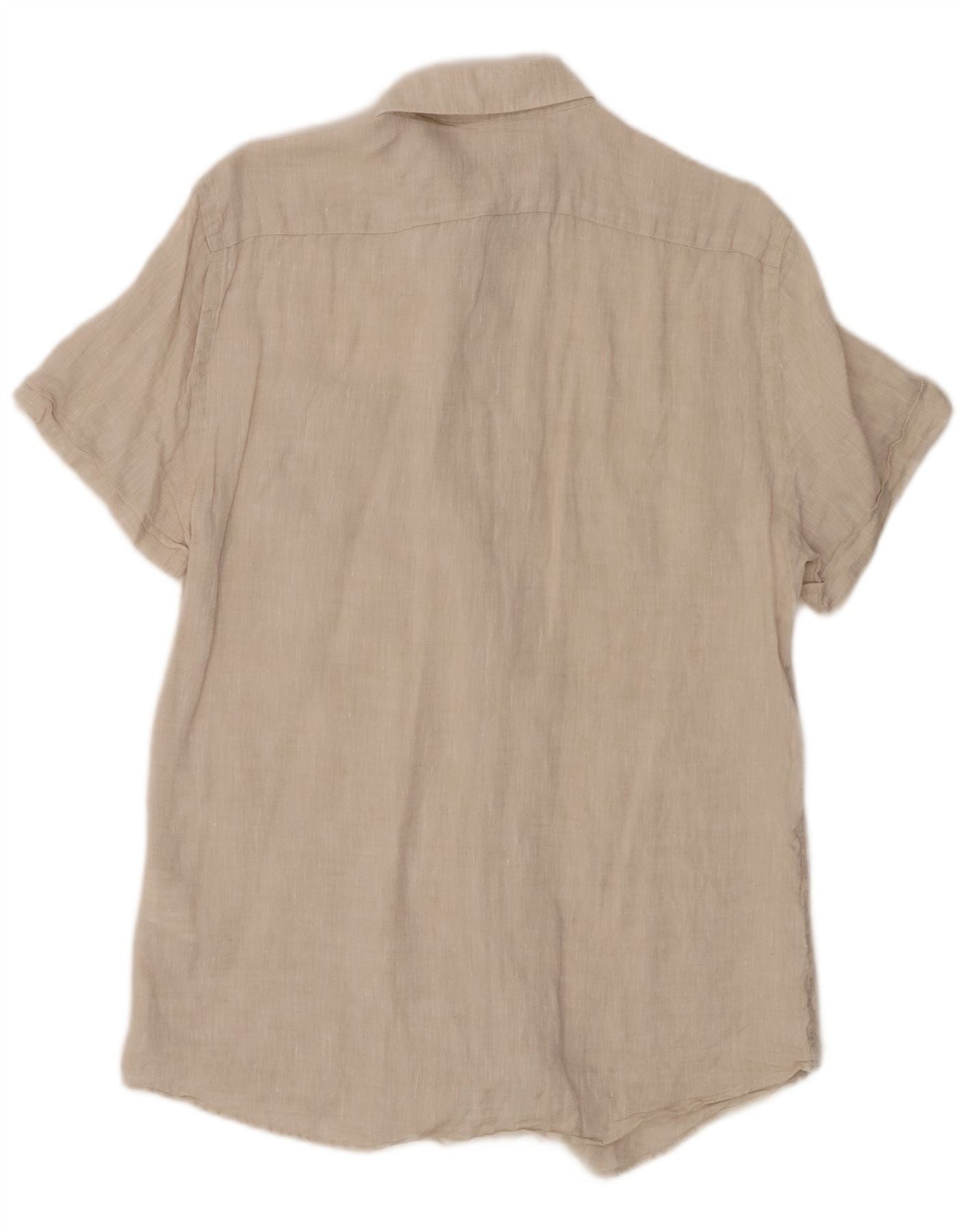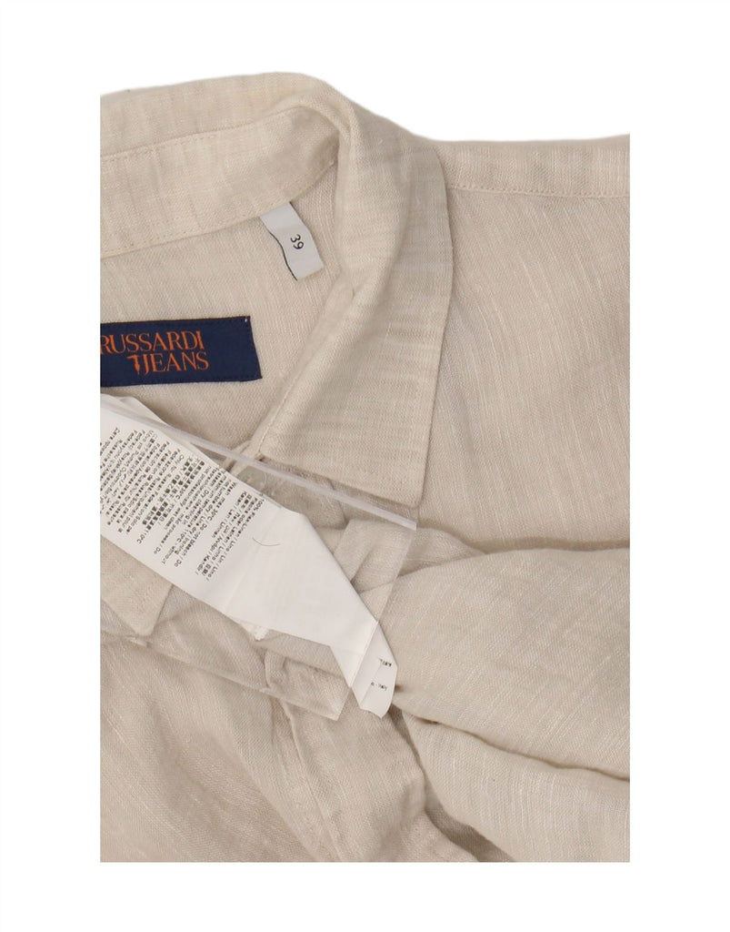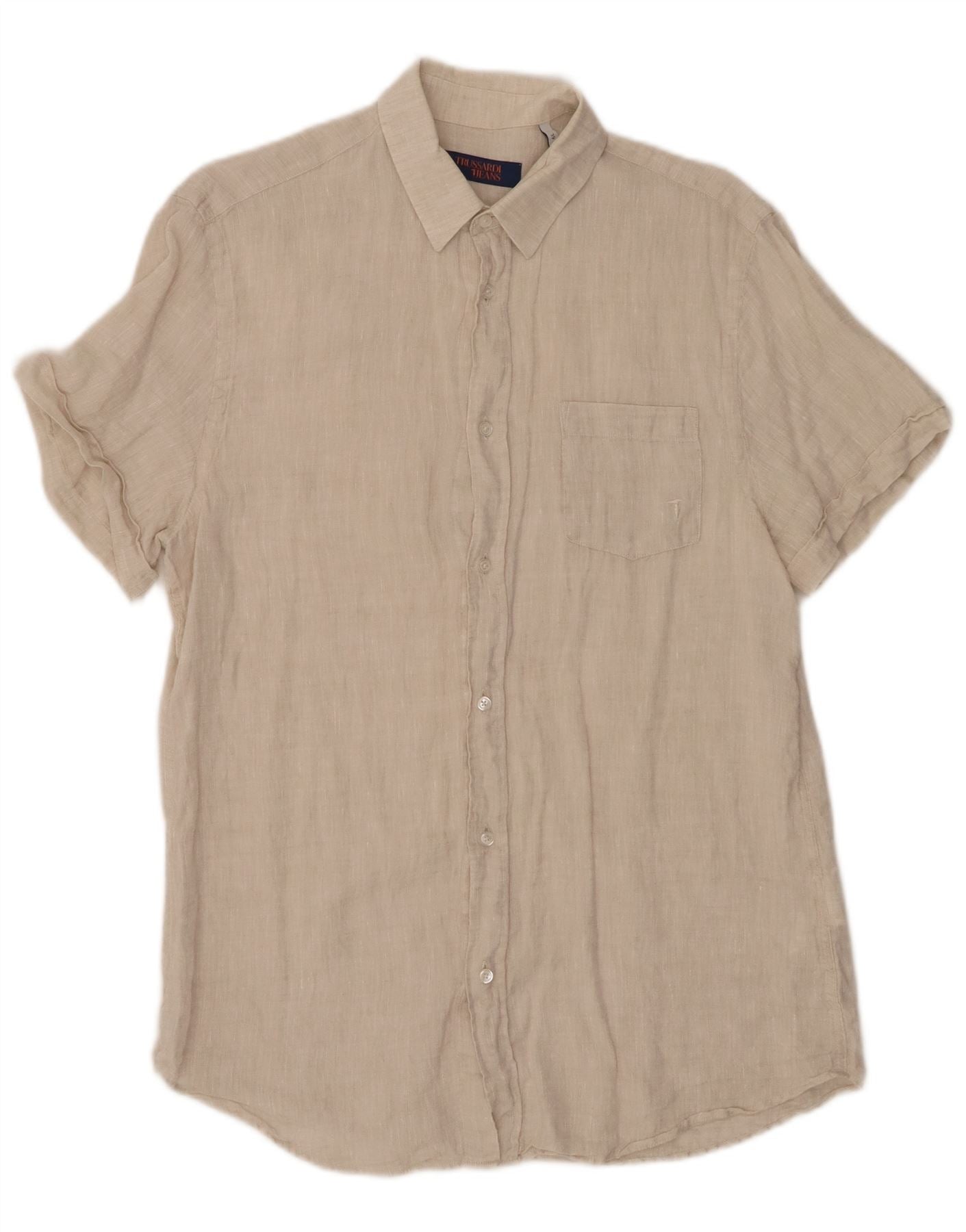 Koszula męska z krótkim rękawem TRUSSARDI JEANS, rozmiar 39, średnio beżowa, lniana