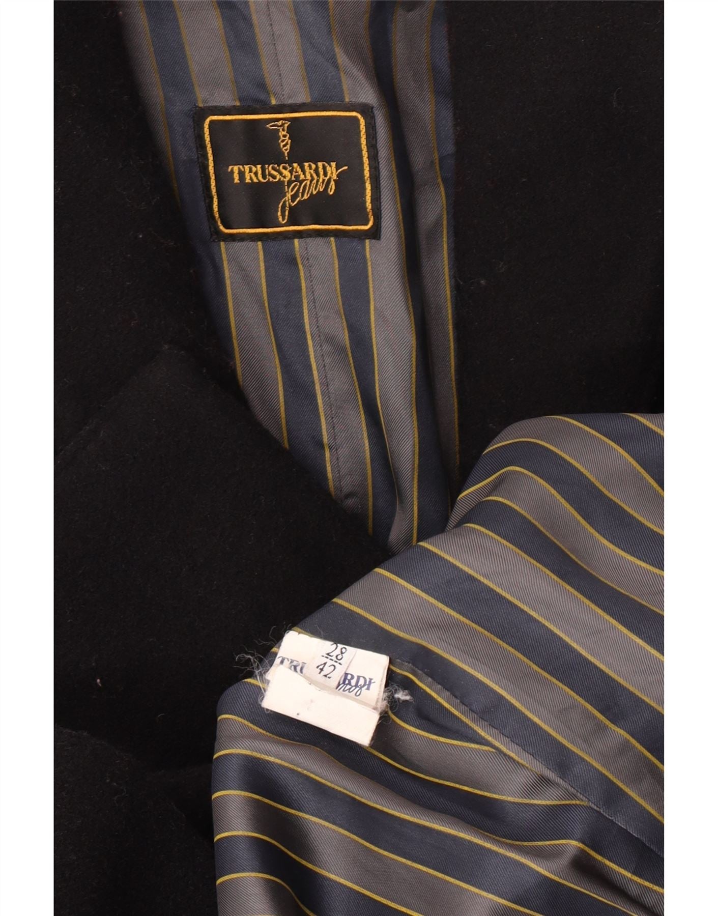 Damski płaszcz dwurzędowy Trussardi Jeans IT 42 Średni czarny dziewiczy wełna