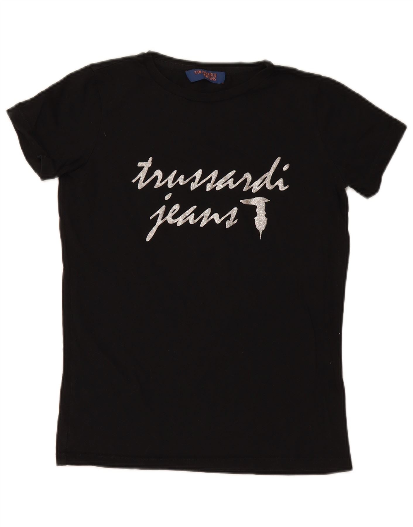 Damska koszulka oversize z grafiką TRUSSARDI JEANS Top UK 2 2XS czarna