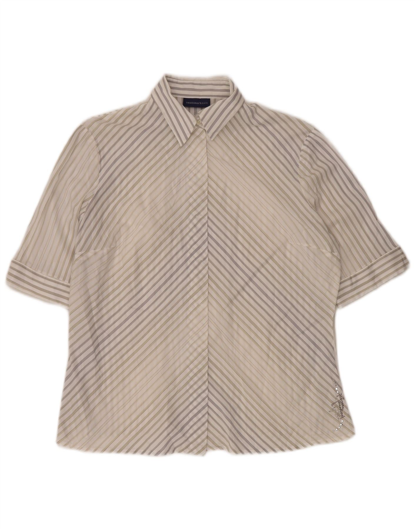 Damska bluzka koszulowa z krótkim rękawem TRUSSARDI JEANS UK 22 3XL Biała w prążki