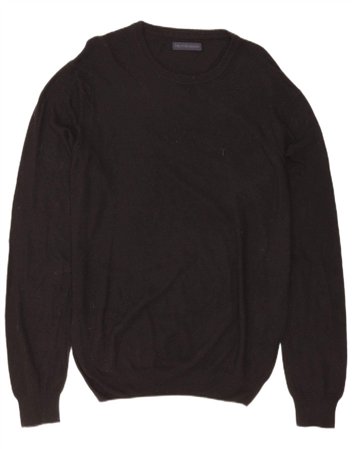 Męski sweter z dekoltem w łódkę TRUSSARDI, duży, czarny poliamid