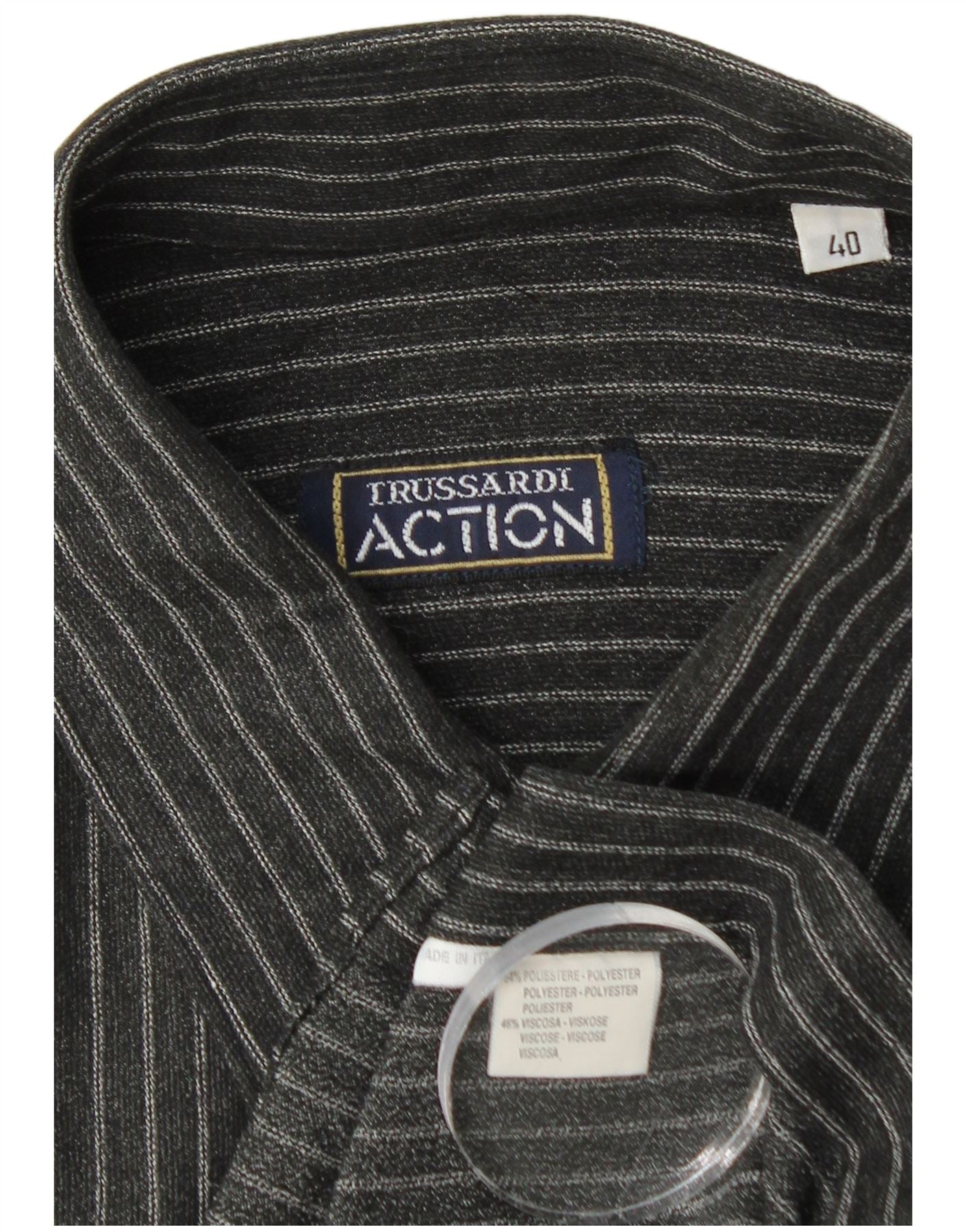 Koszula męska Trussardi, rozmiar 40, średni czarny poliester w prążki