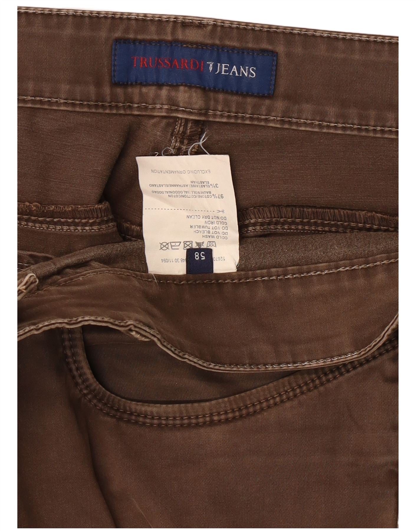 Męskie proste spodnie codzienne TRUSSARDI IT 58 3XL W40 L36 Brązowa bawełna