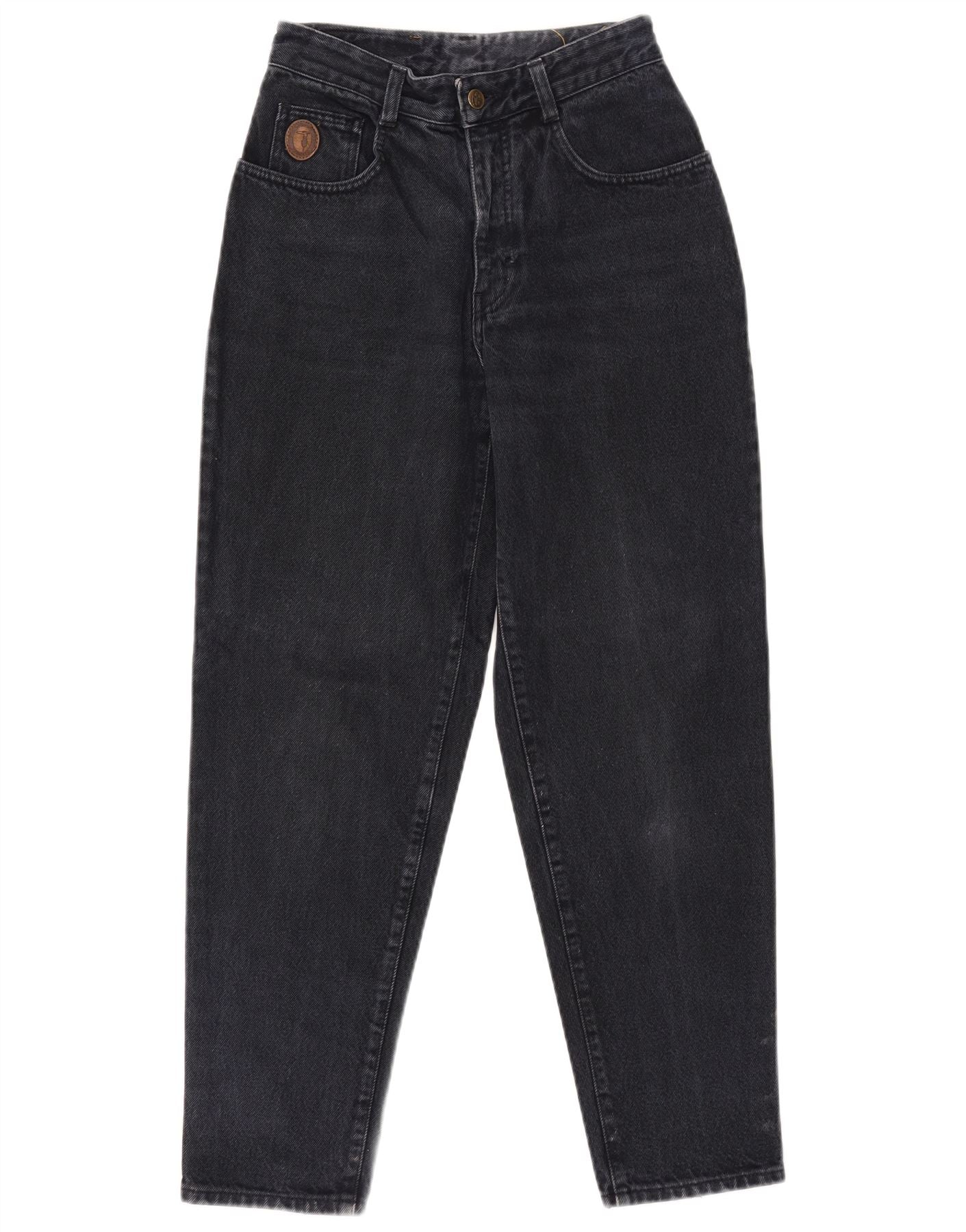 VINTAGE Womens Leather Coat UK 10 Small Black