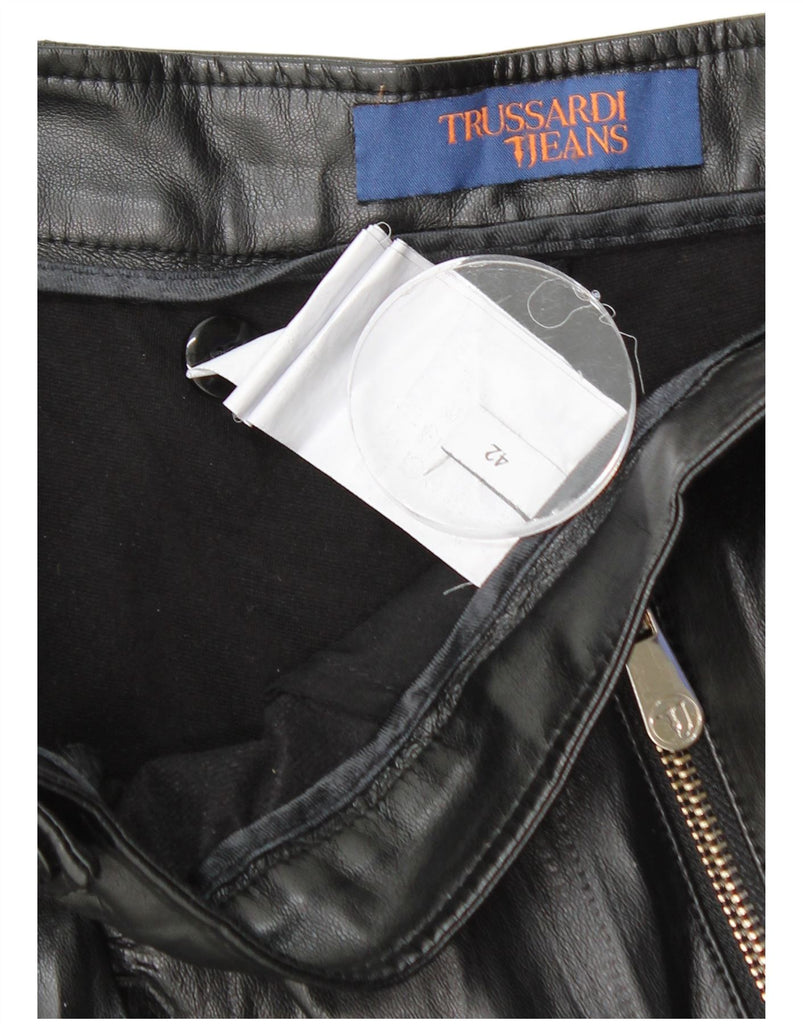 TRUSSARDI Womens Skinny Faux Leather Trousers IT 42 Medium W30 L25 Black