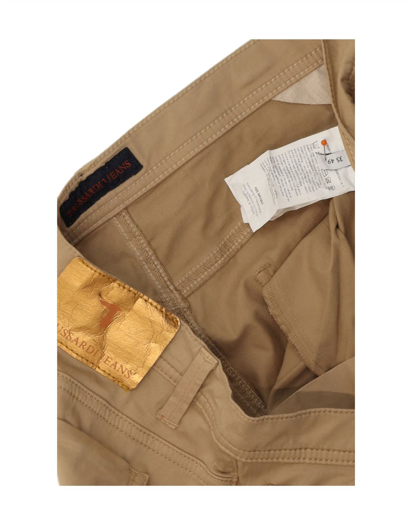 TRUSSARDI Womens Slim Casual Trousers IT 49 XL W35 L28 Brown Cotton