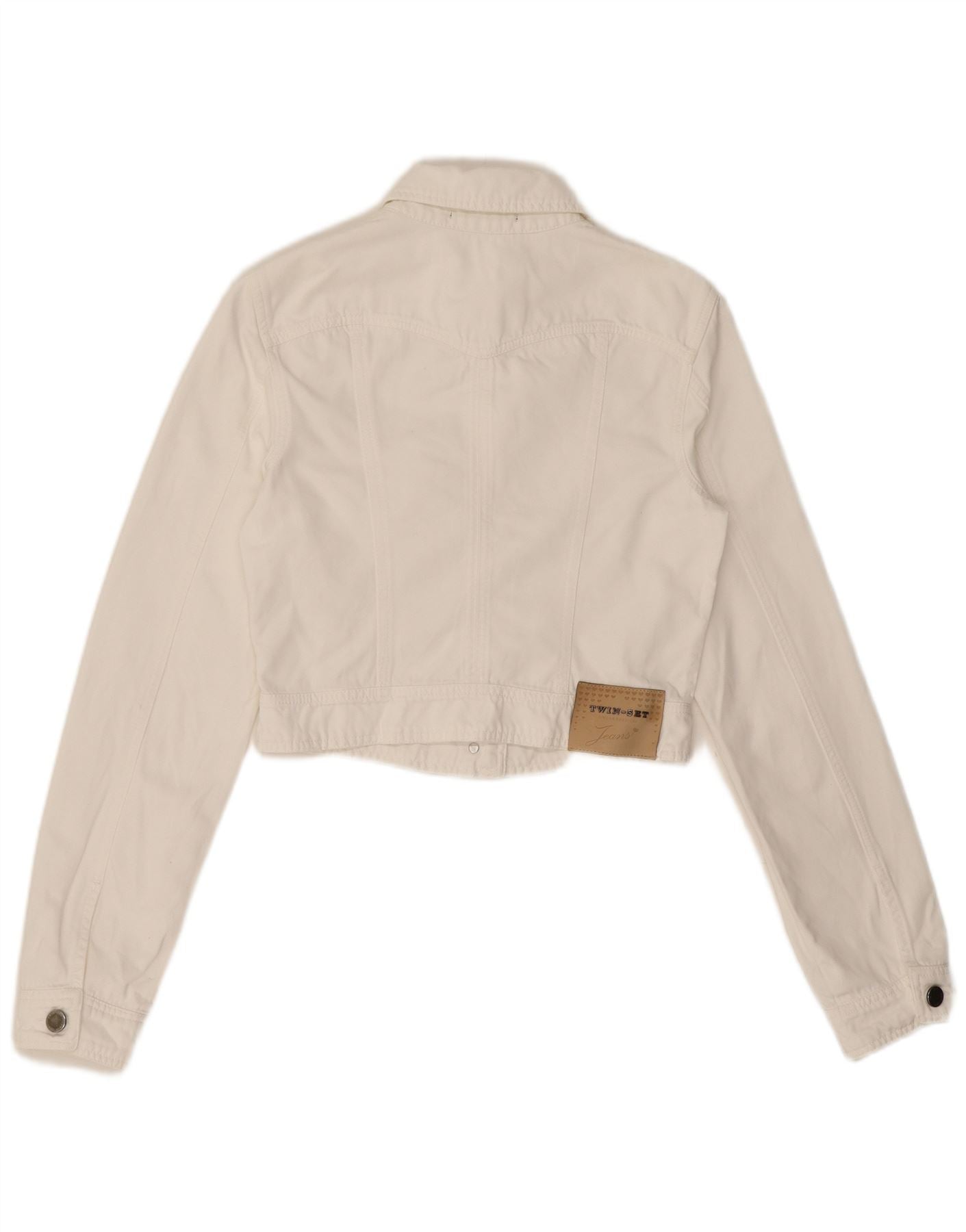 Dwuczęściowa damska kurtka jeansowa UK 12, średnia biel