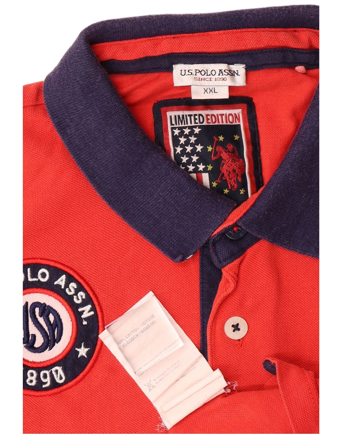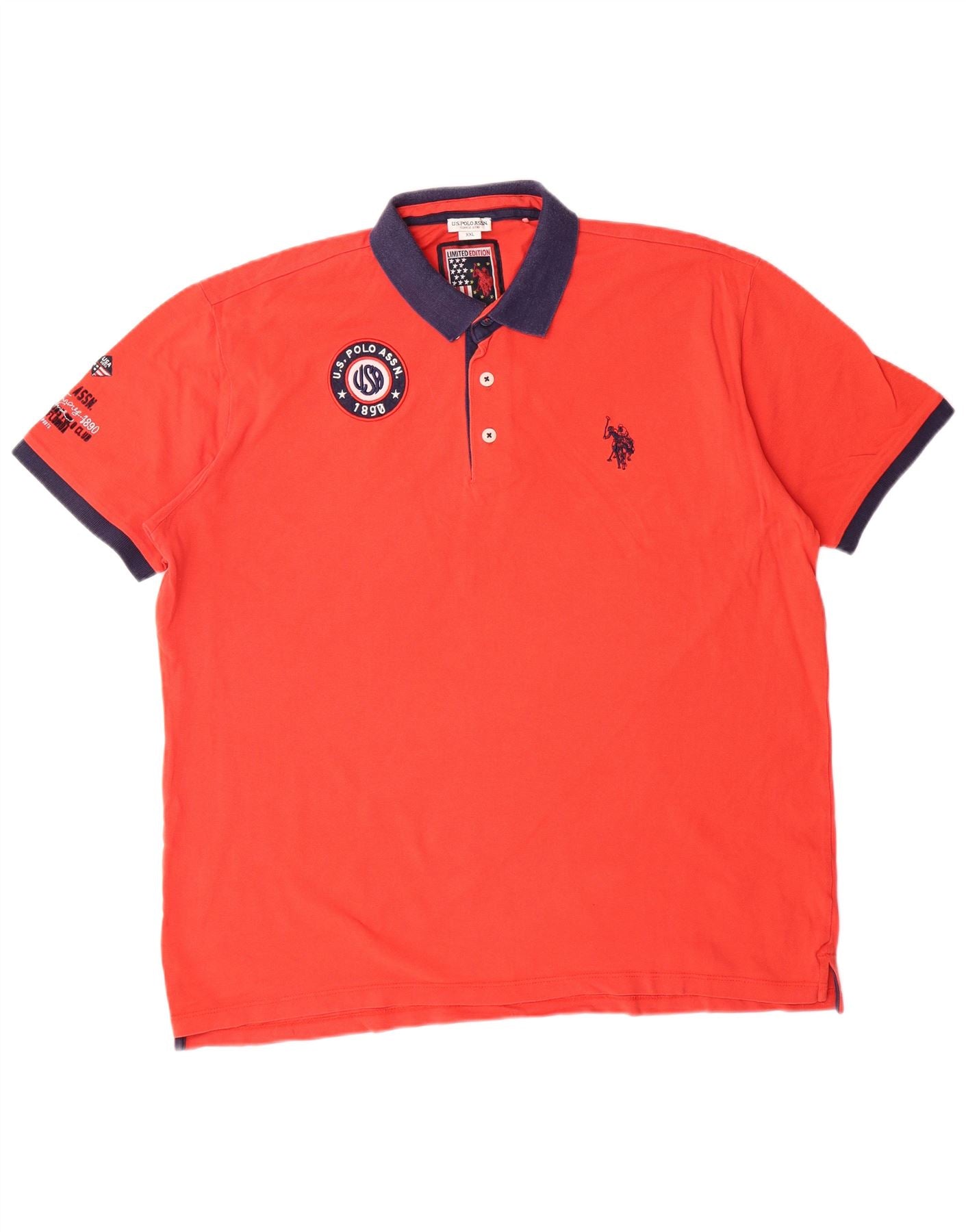 US POLO ASSN. Męska graficzna koszulka polo 2XL Pomarańczowa, bawełniana z blokami kolorów
