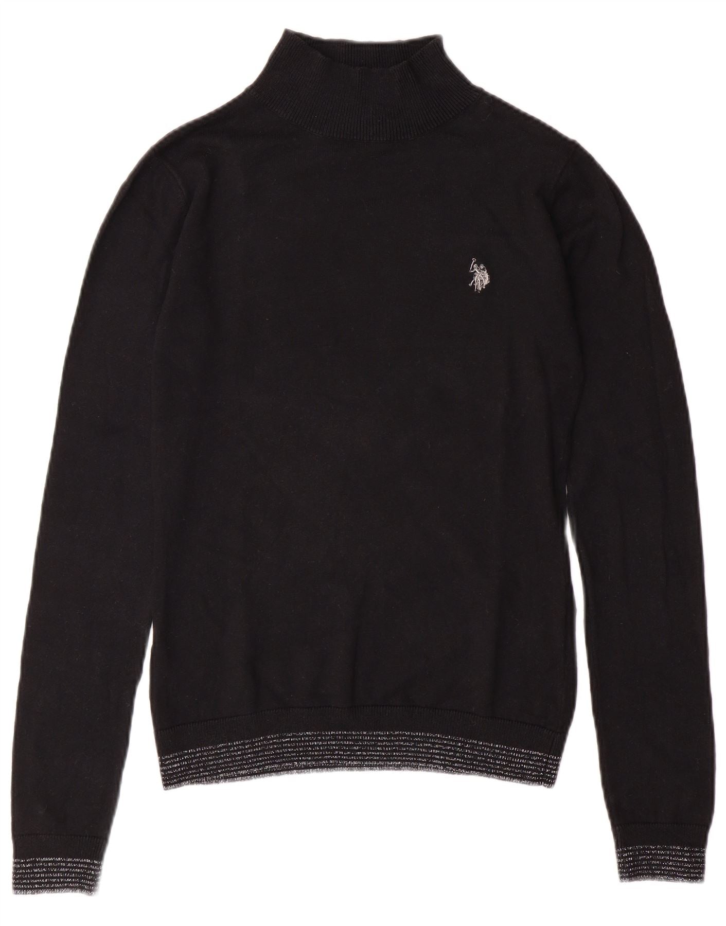 US POLO ASSN. Damski sweter z golfem UK 6 XS, czarna bawełna