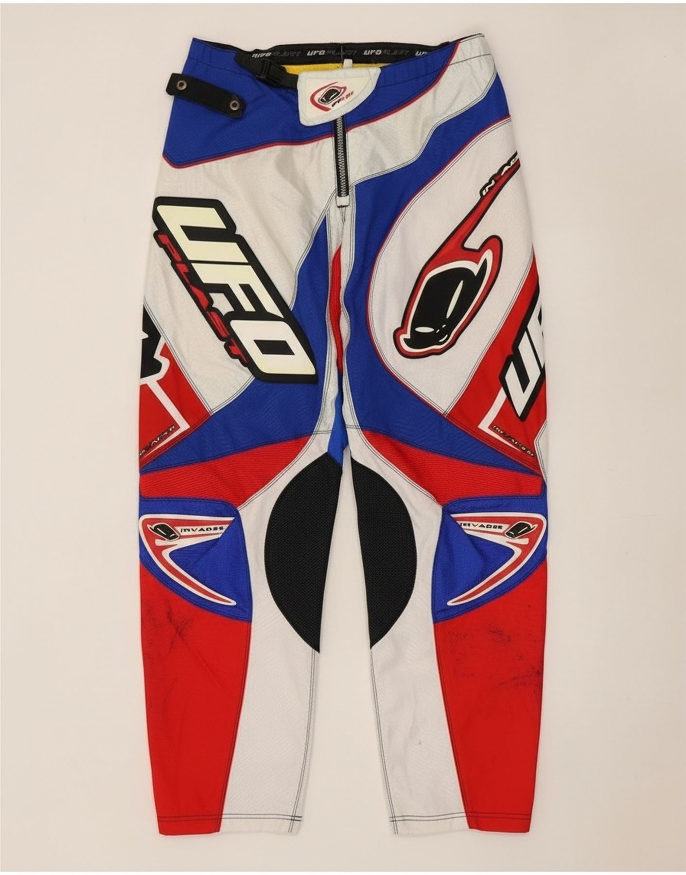 - Opis sztucznej inteligencji: Męskie spodnie motocrossowe UFO są wykonane z wytrzymałej tkaniny mieszanej z oddychającymi panelami z siateczki. Oferują luźny krój z regulowaną talią dla optymalnego komfortu. Bezpieczne zapięcie na zamek błyskawiczny zapina przód. Uderzający wzór bloków kolorów w kolorze czerwonym, niebieskim i białym tworzy dynamiczną estetykę. Odważne akcenty graficzne i widoczne logo podkreślają autentyczny styl wyścigowy. Dla wygody dołączono praktyczne kieszenie.