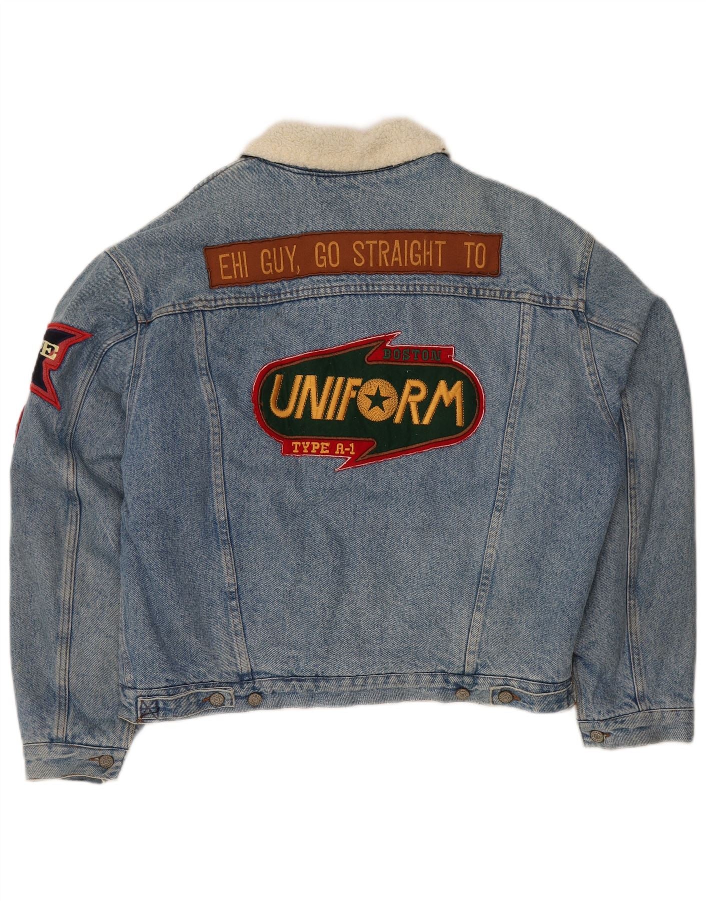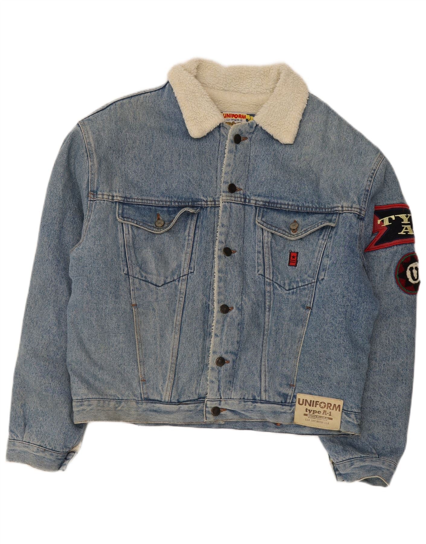 UNIFORM Męska kurtka dżinsowa typu A-1 Graphic Sherpa, UK 40, duża niebieska