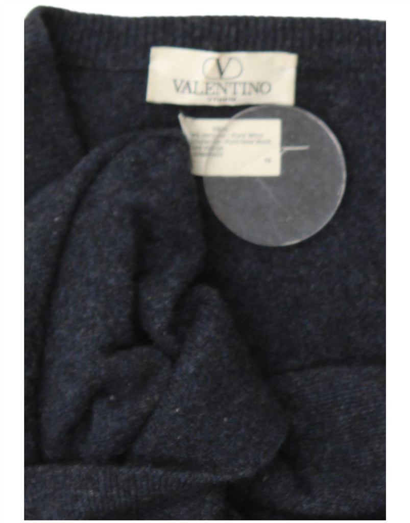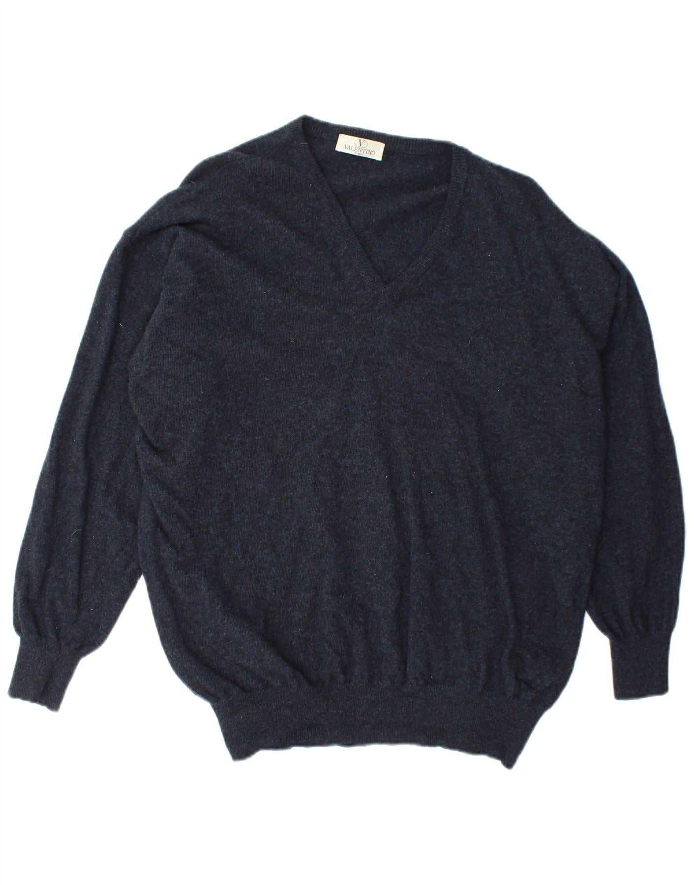 VALENTINO Męski sweter z dekoltem w kształcie litery V, XL, granatowy, wełniany w cętki