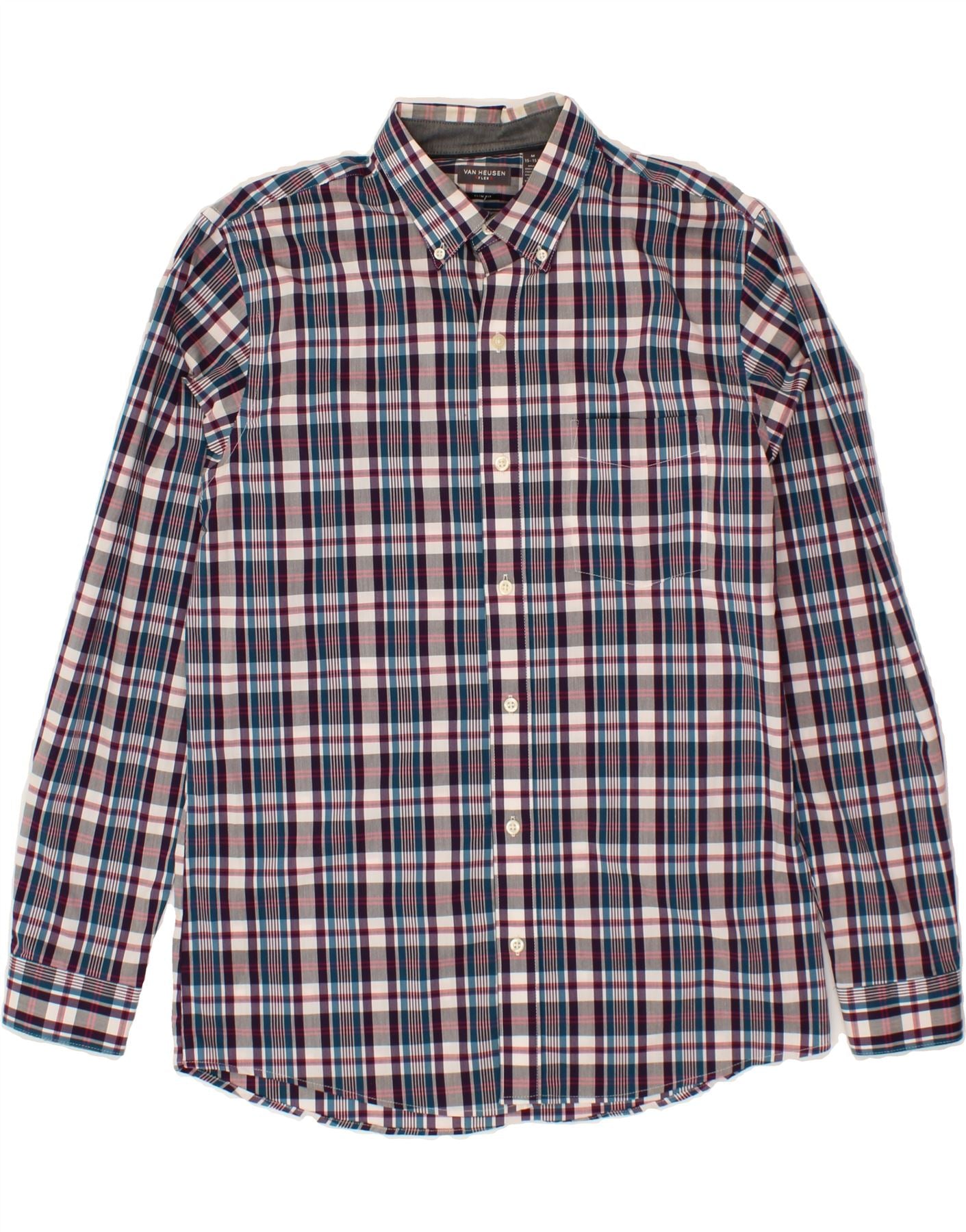 VAN HEUSEN Mens Flex Slim Fit Shirt Size 15 1/2 Medium Burgundy Check