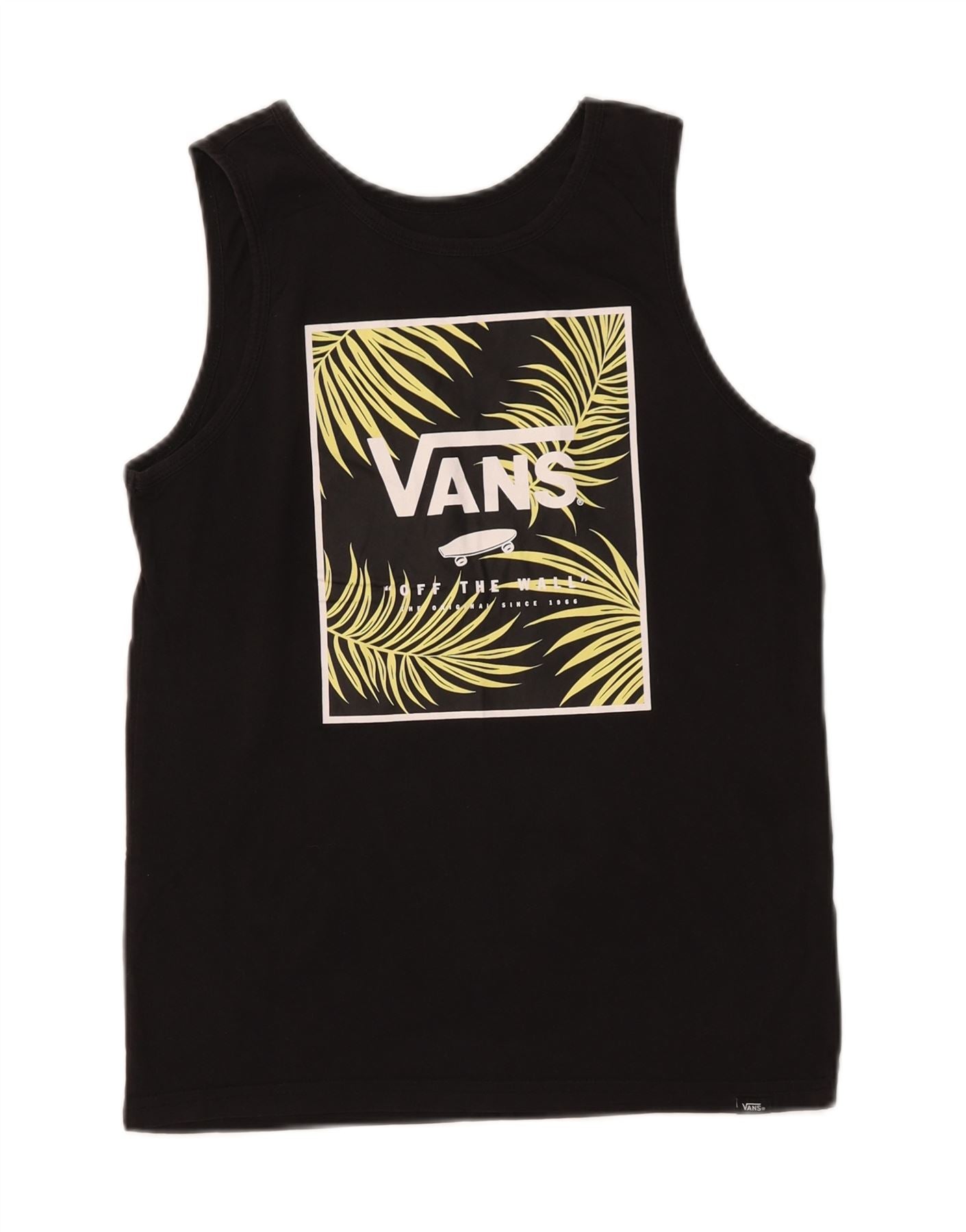 VANS Boys Custom Fit Graphic Vest Top 12-13 Years Large Black Cotton