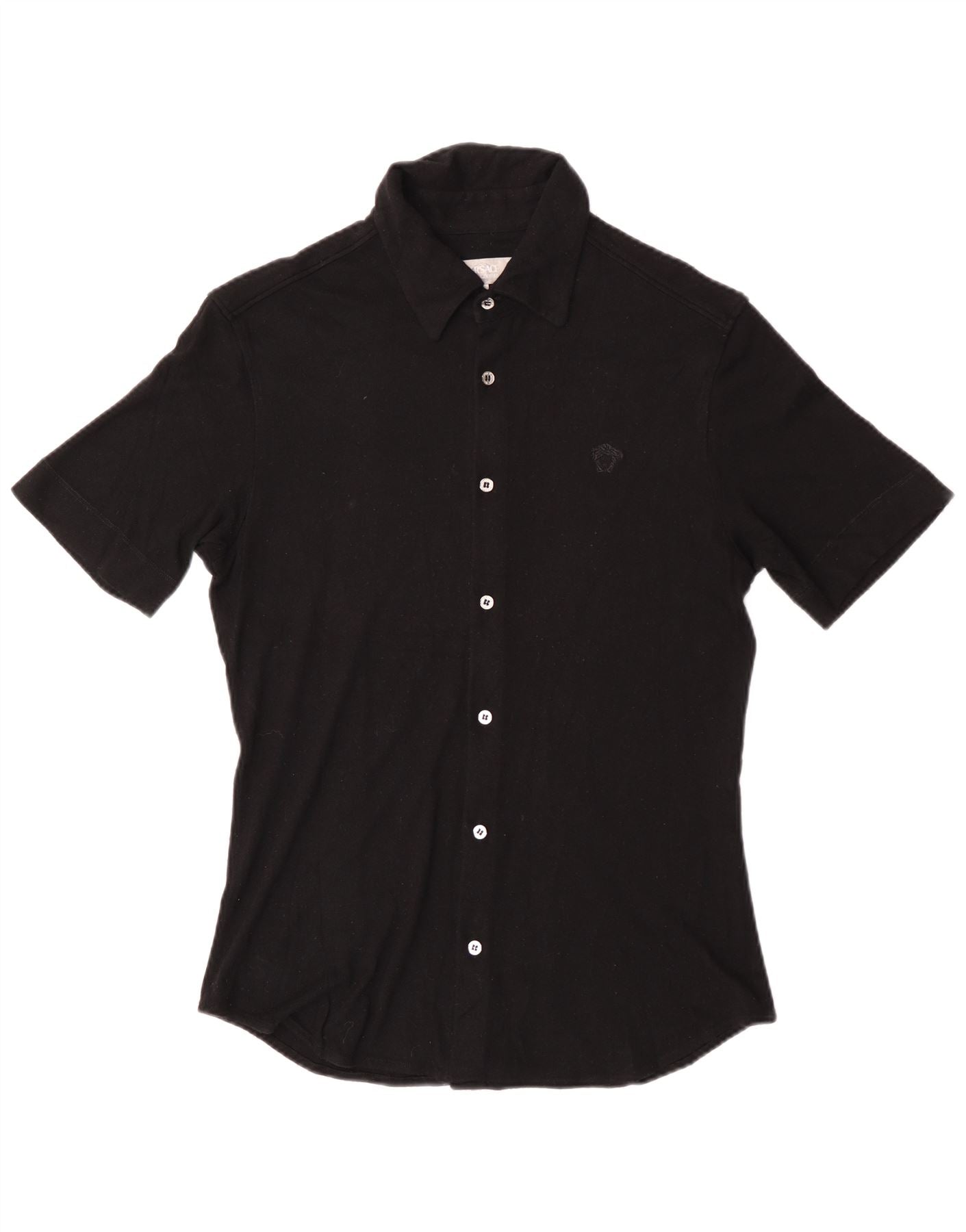 - Opis sztucznej inteligencji: Ta koszula damska Versace Jeans Couture jest wykonana z cienkiej czarnej dzianiny o gładkiej fakturze. Posiada klasyczny dekolt z kołnierzykiem i krótkie rękawy. Przód zapinany na guziki zapewnia regularny krój sylwetki. Na piersi umieszczono subtelny akcent logo. Kontrastowe guziki uzupełniają wyrafinowany wygląd. Ten model oferuje uniwersalny styl na różne okazje.