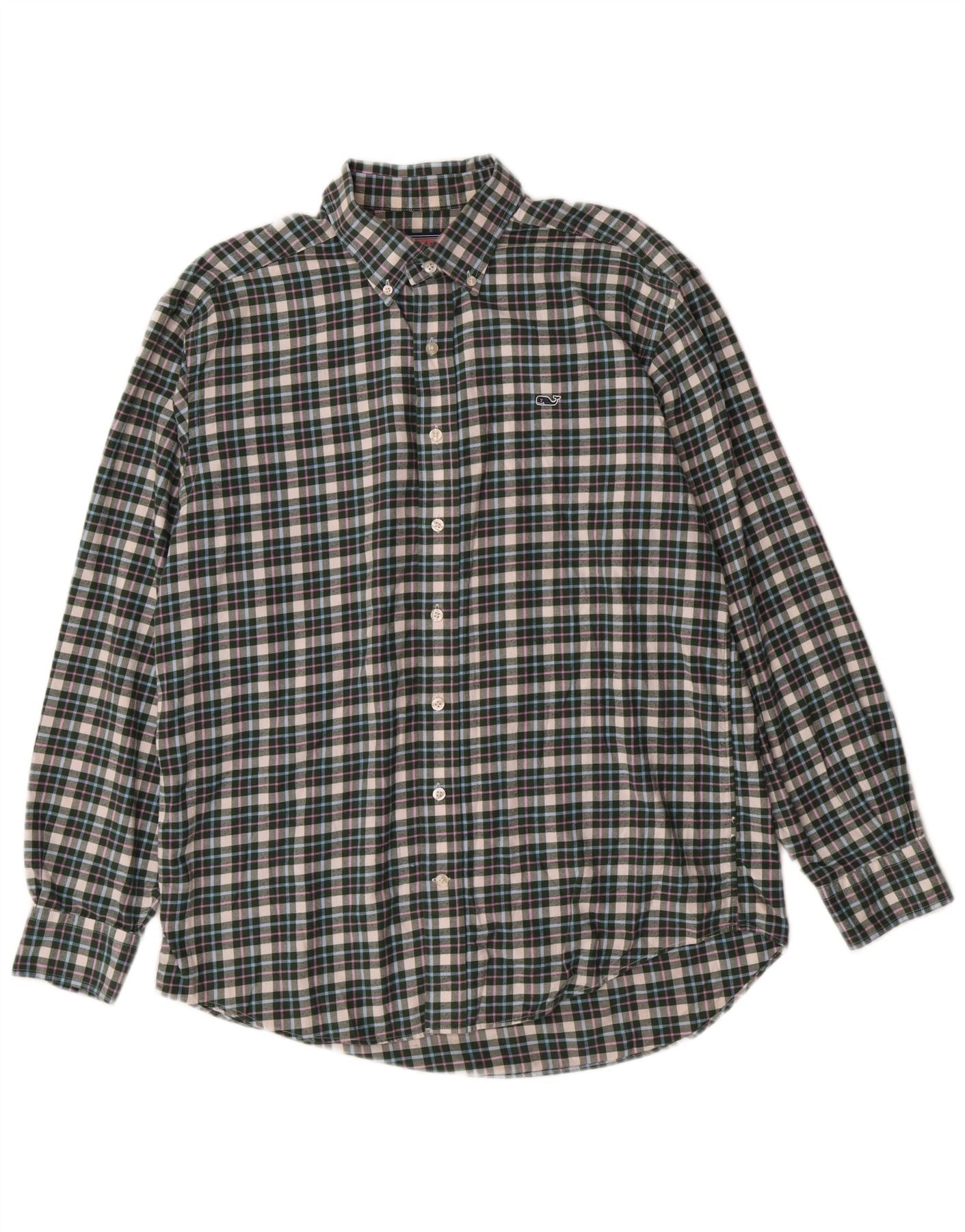 - Opis sztucznej inteligencji: Męska koszula wieloryb Vineyard Vines jest wykonana w 100% z bawełny i jest wykonana z tkaniny. Ma klasyczny zielony wzór w kratkę i regularny krój. Dekolt z kołnierzykiem i zapięcie na guziki zapewniają ponadczasowy styl. Długie rękawy i dwie kieszenie na piersi dodają praktycznych detali. Ta koszula typu preppy zapewnia wygodę podczas noszenia na co dzień.