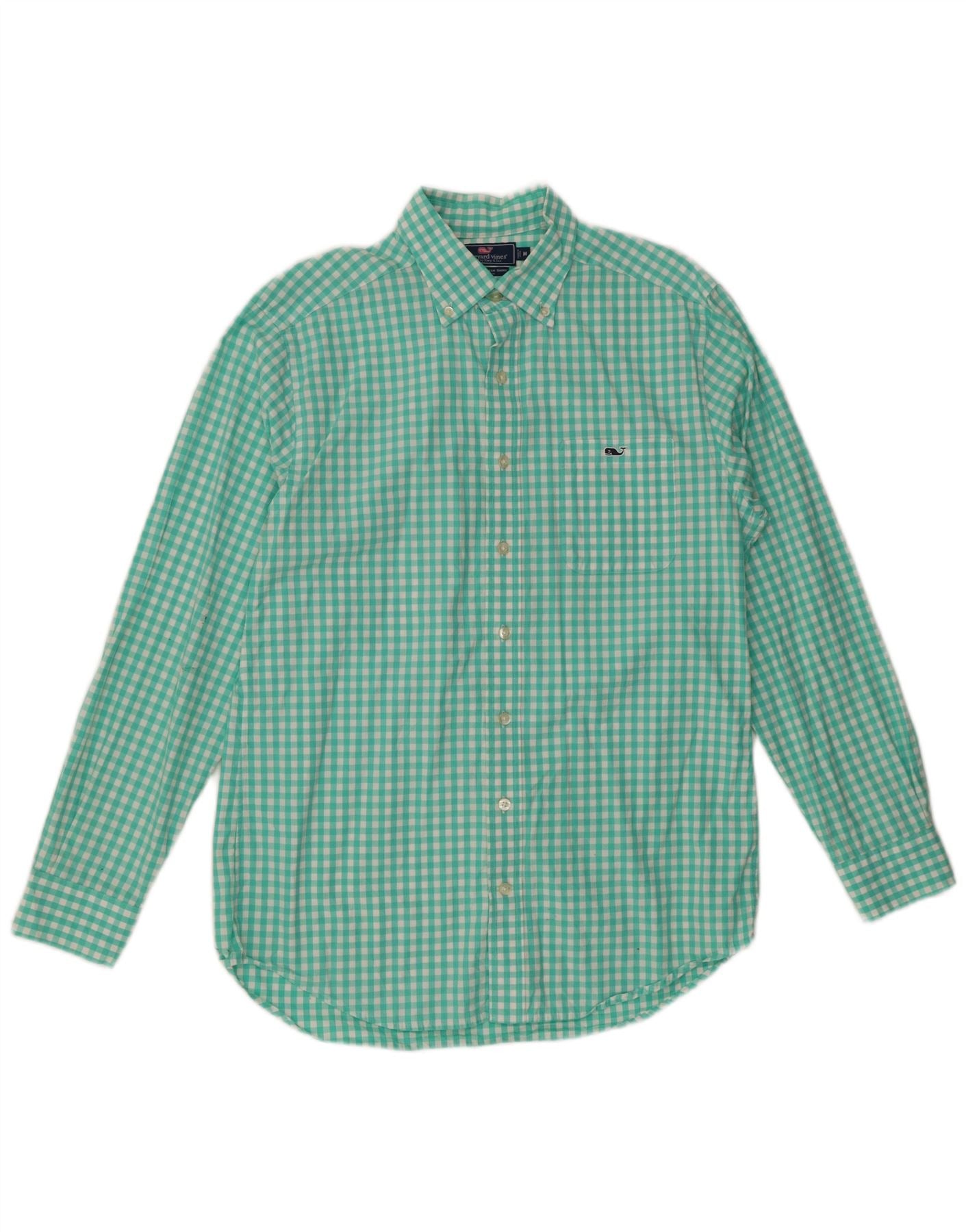 Koszula męska slim fit VINEYARD VINES, bawełniana kratka w kolorze średniego turkusu