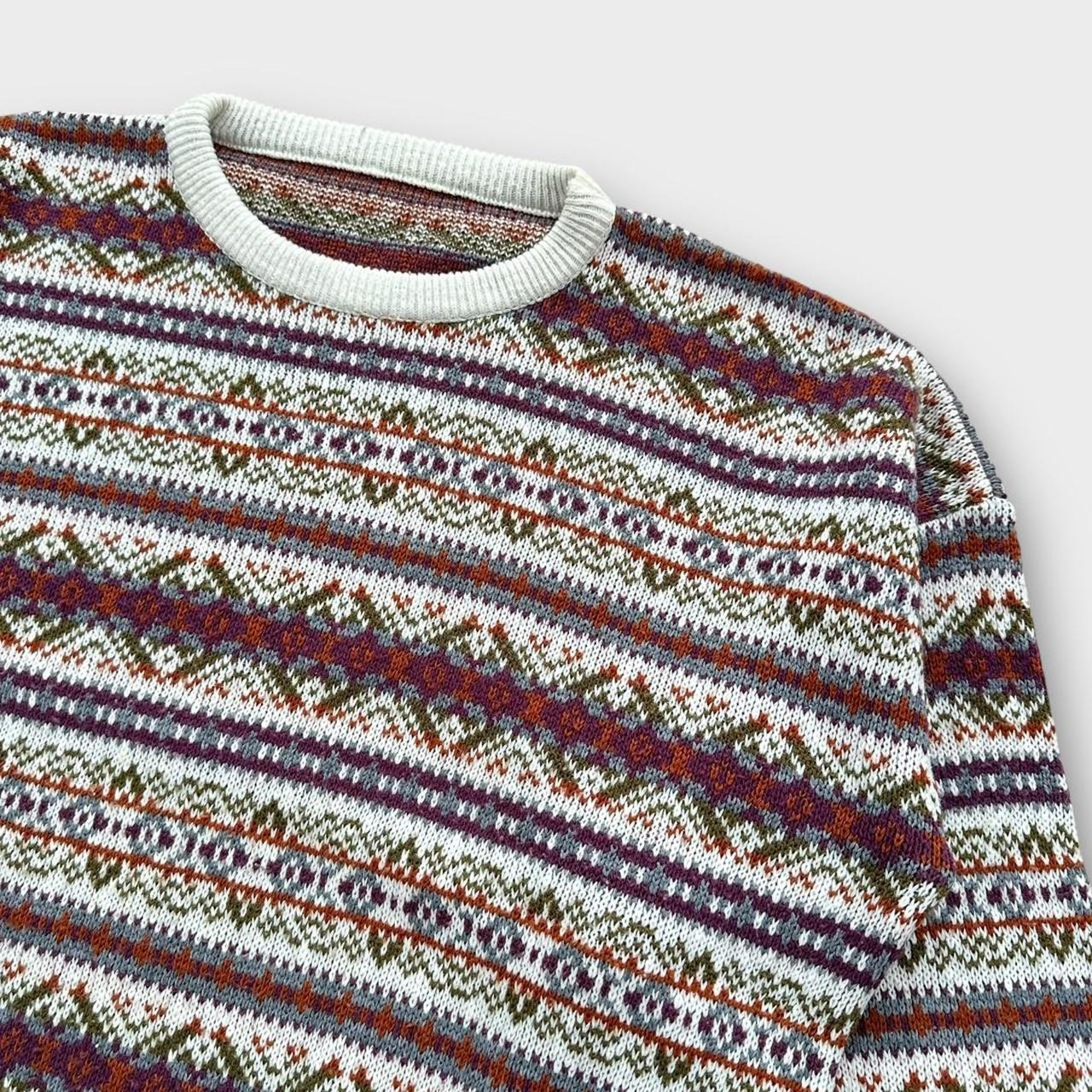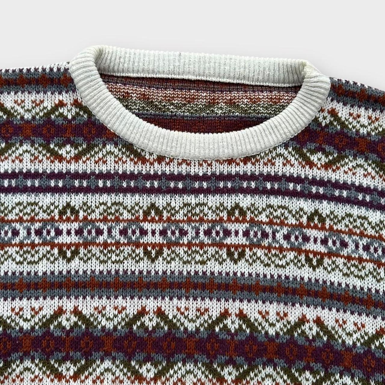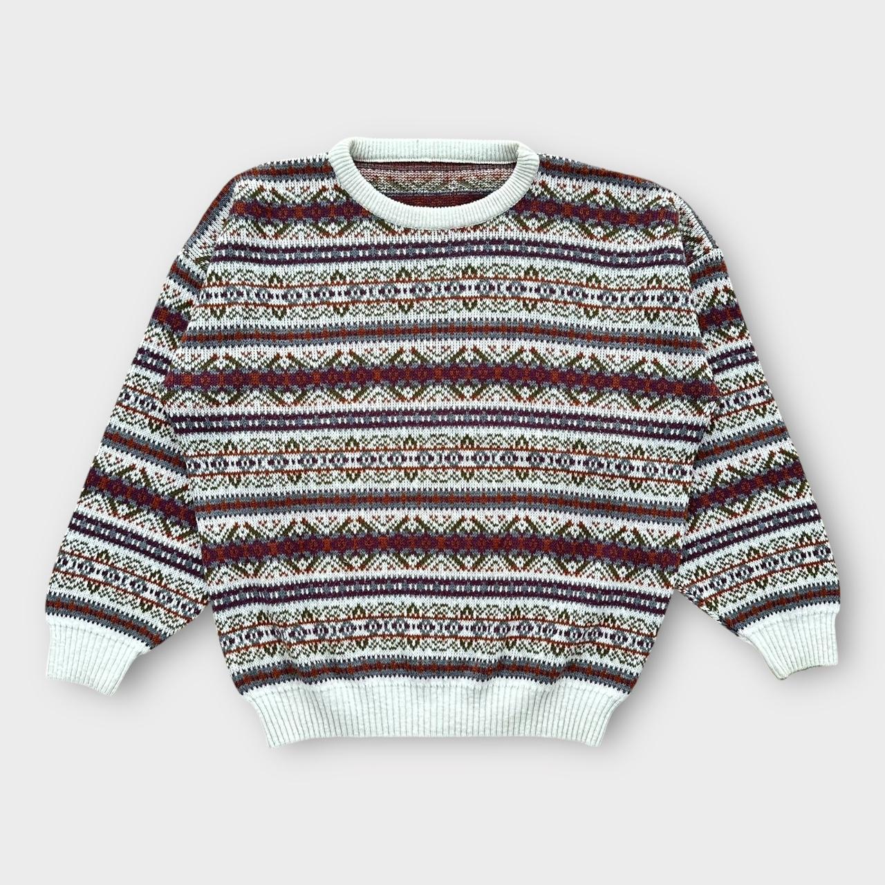 Dzianinowy sweter we wzorzyste lata 90-te – XL