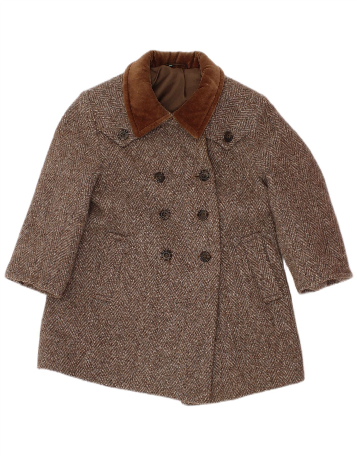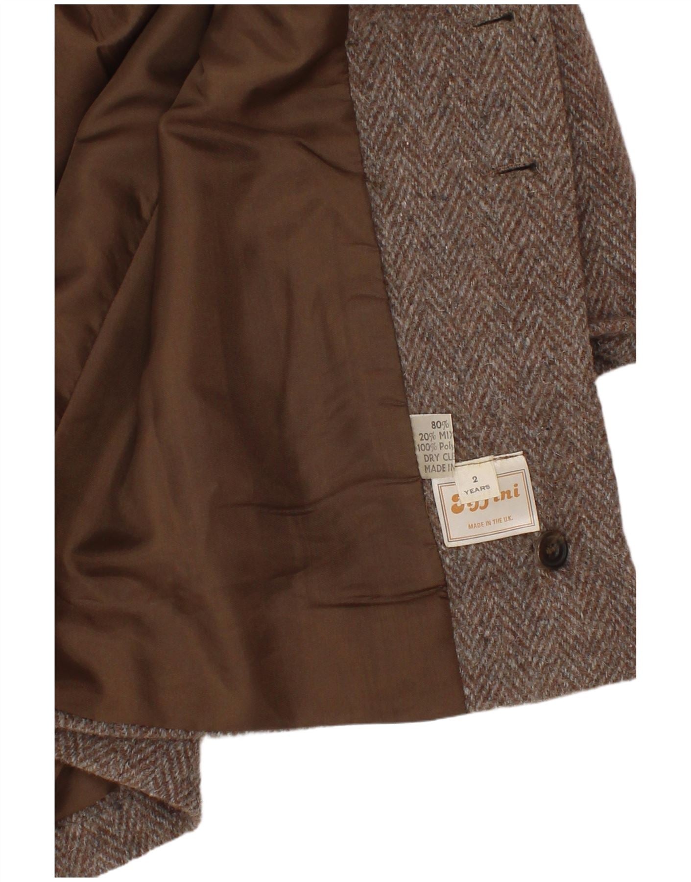 VINTAGE Dwurzędowy płaszczyk dla dziewczynki 18-24 miesięcy, brązowy, w jodełkę