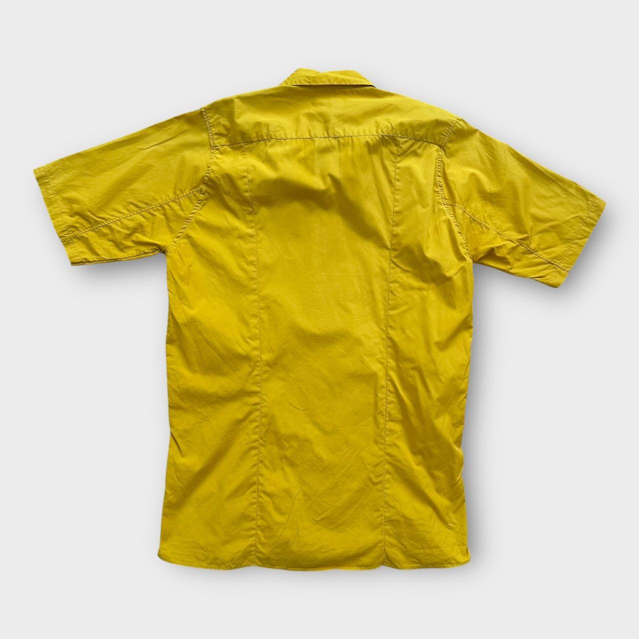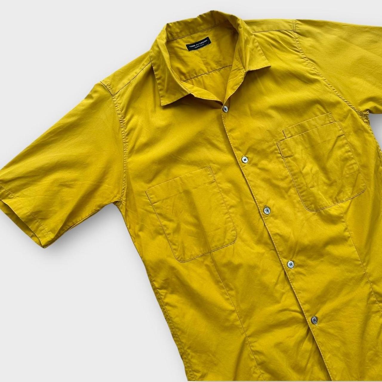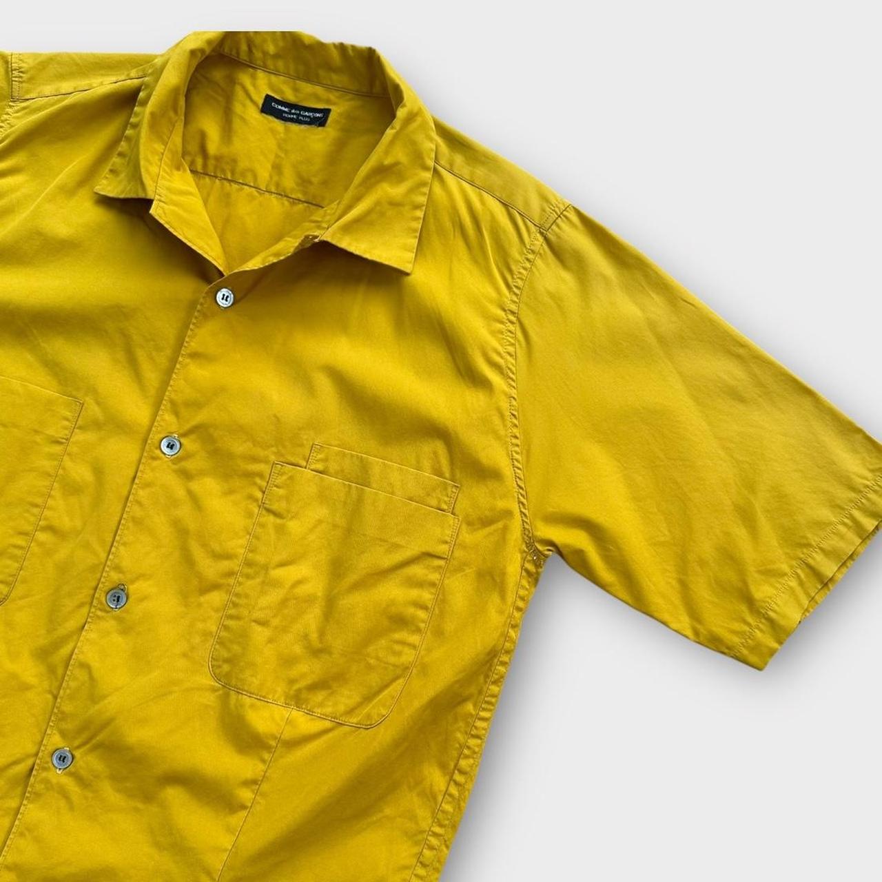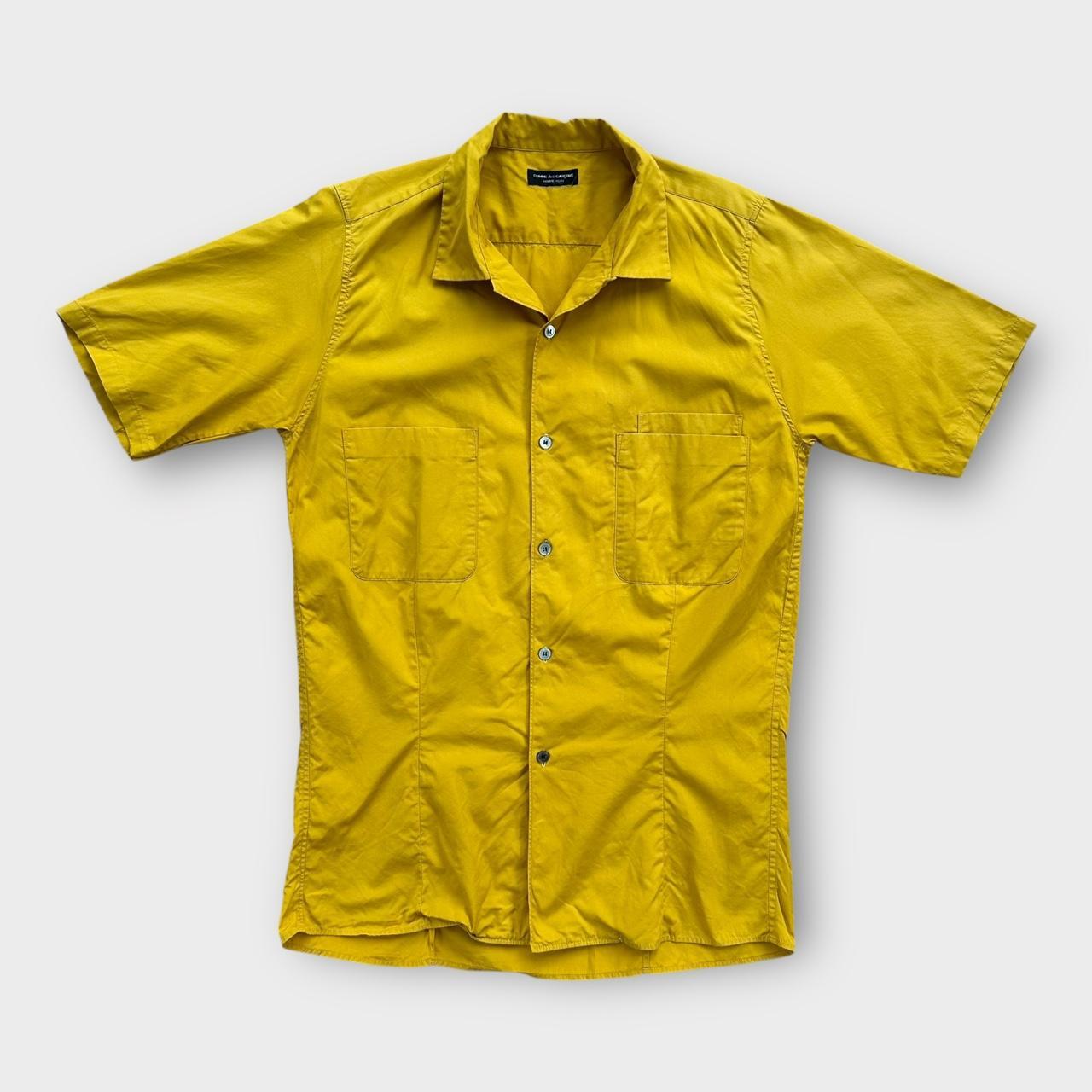Żółta koszula Comme Des Garçons w stylu vintage, zapinana na krótki rękaw, z kieszeniami z przodu