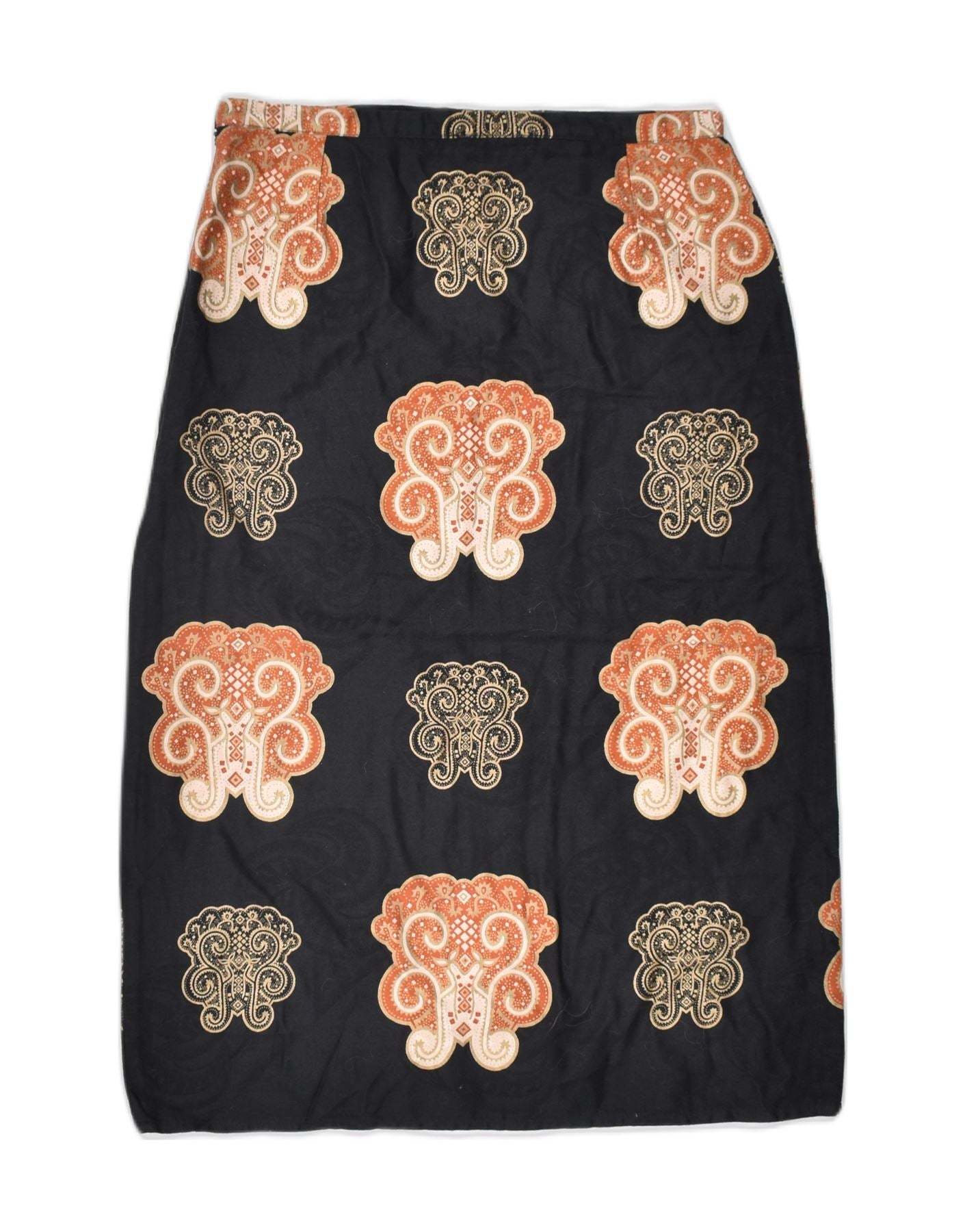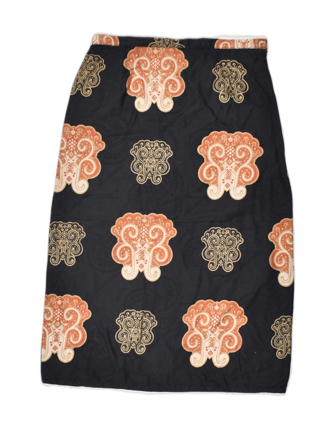 VINTAGE damska prosta spódnica mała W26 czarna kwiatowa wiskoza klasyczna
