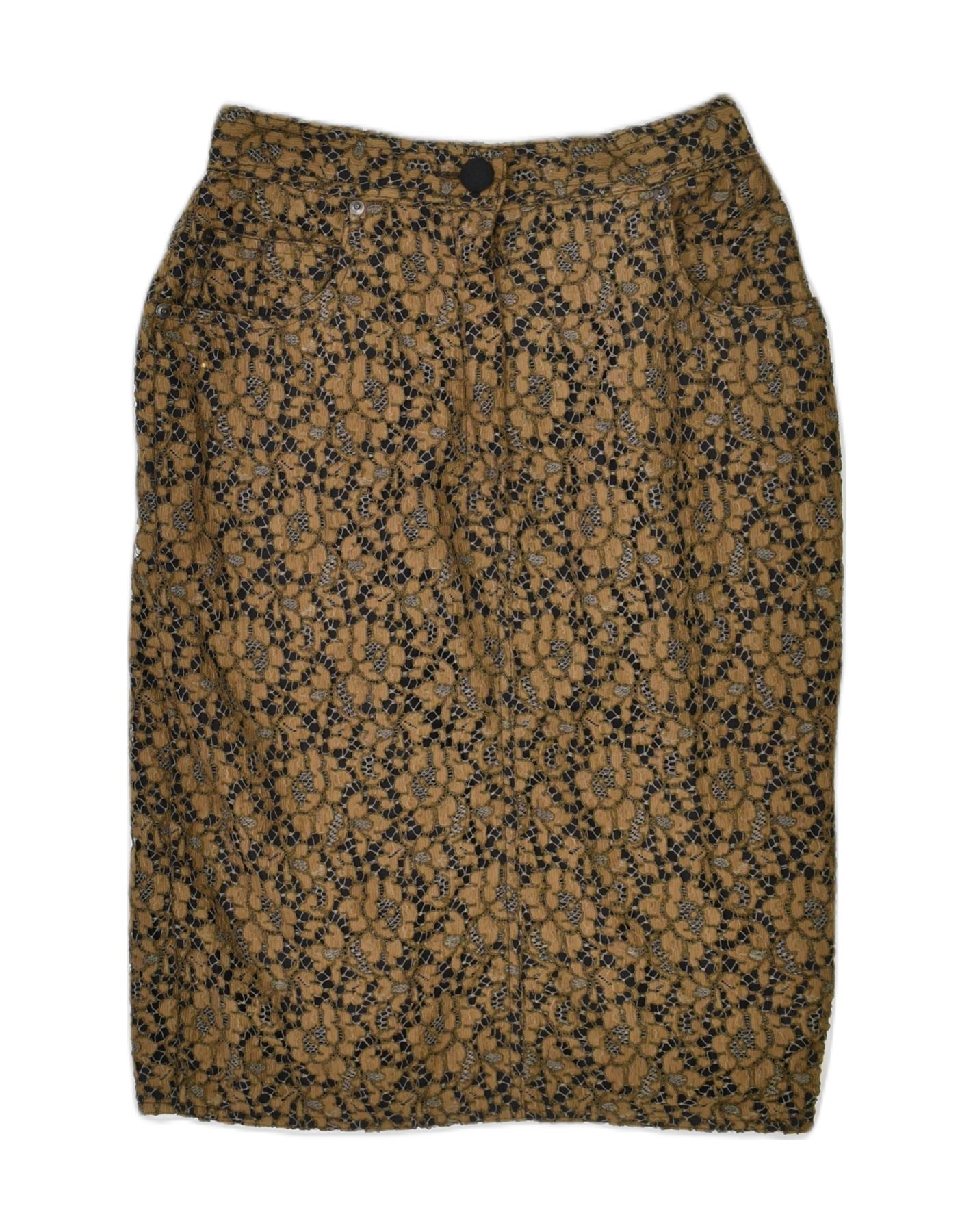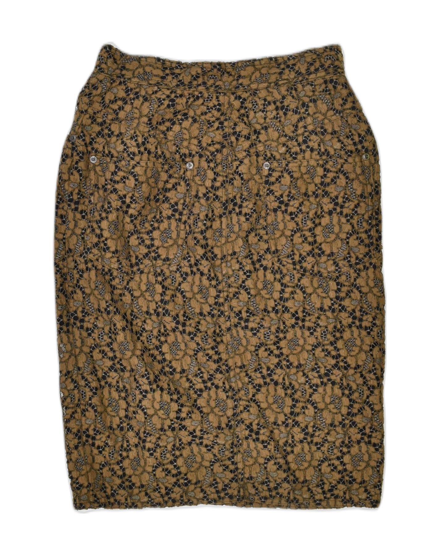 VINTAGE Damska wąska spódnica ołówkowa IT 42 Medium W26 Brązowa bawełniana w kwiaty