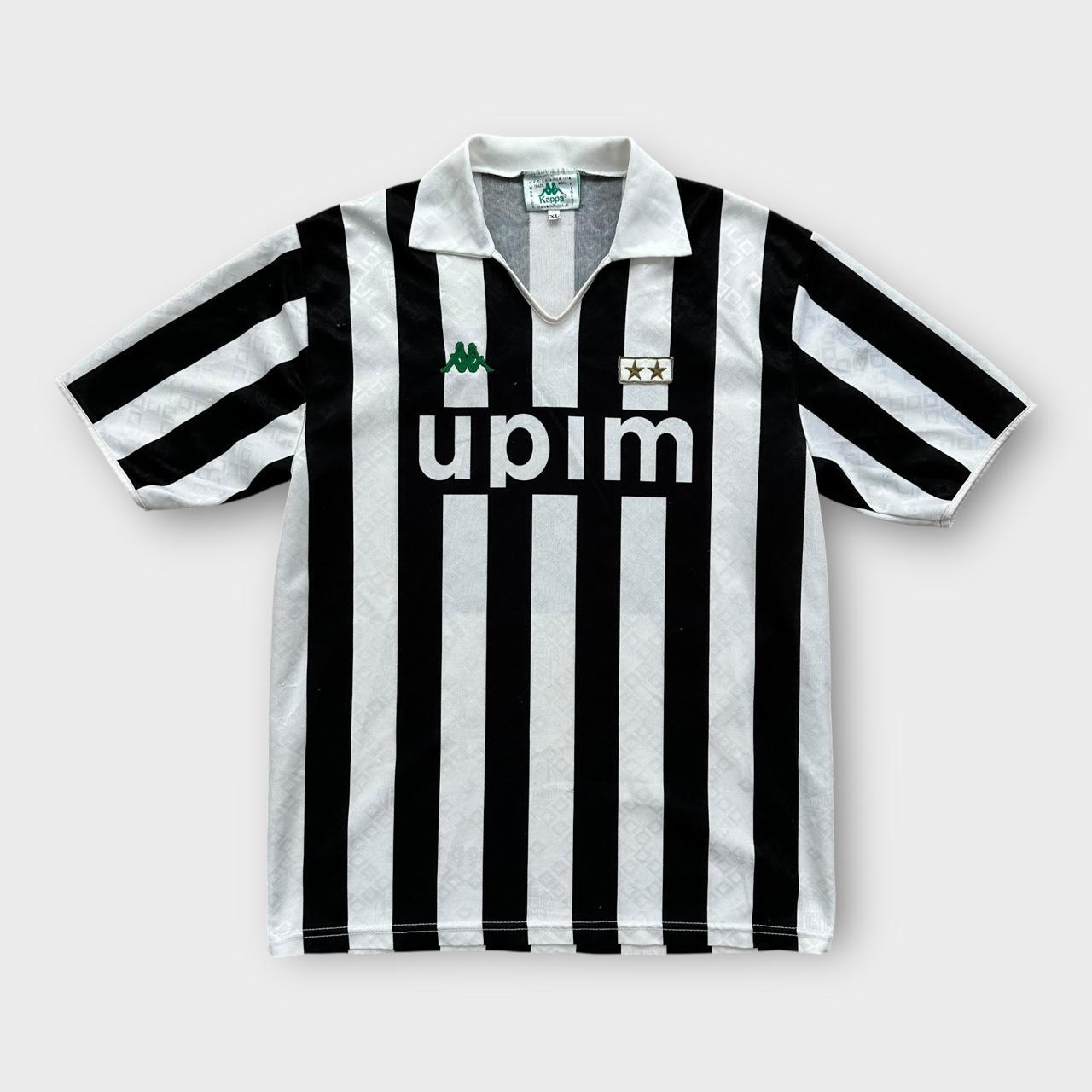 Vintage koszulka piłkarska Juventus 1991/1992 firmy Kappa z haftowanymi logo i nadrukiem sponsora na piersi