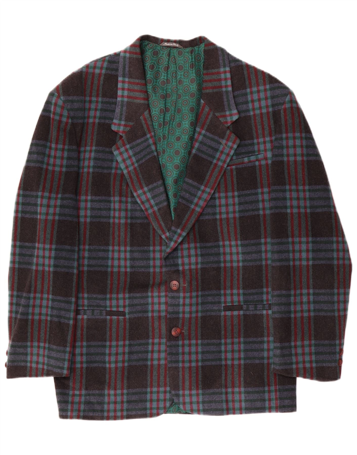 Vintage męska marynarka zapinana na 2 guziki IT 48 Średni granatowy wełniany kratkę
