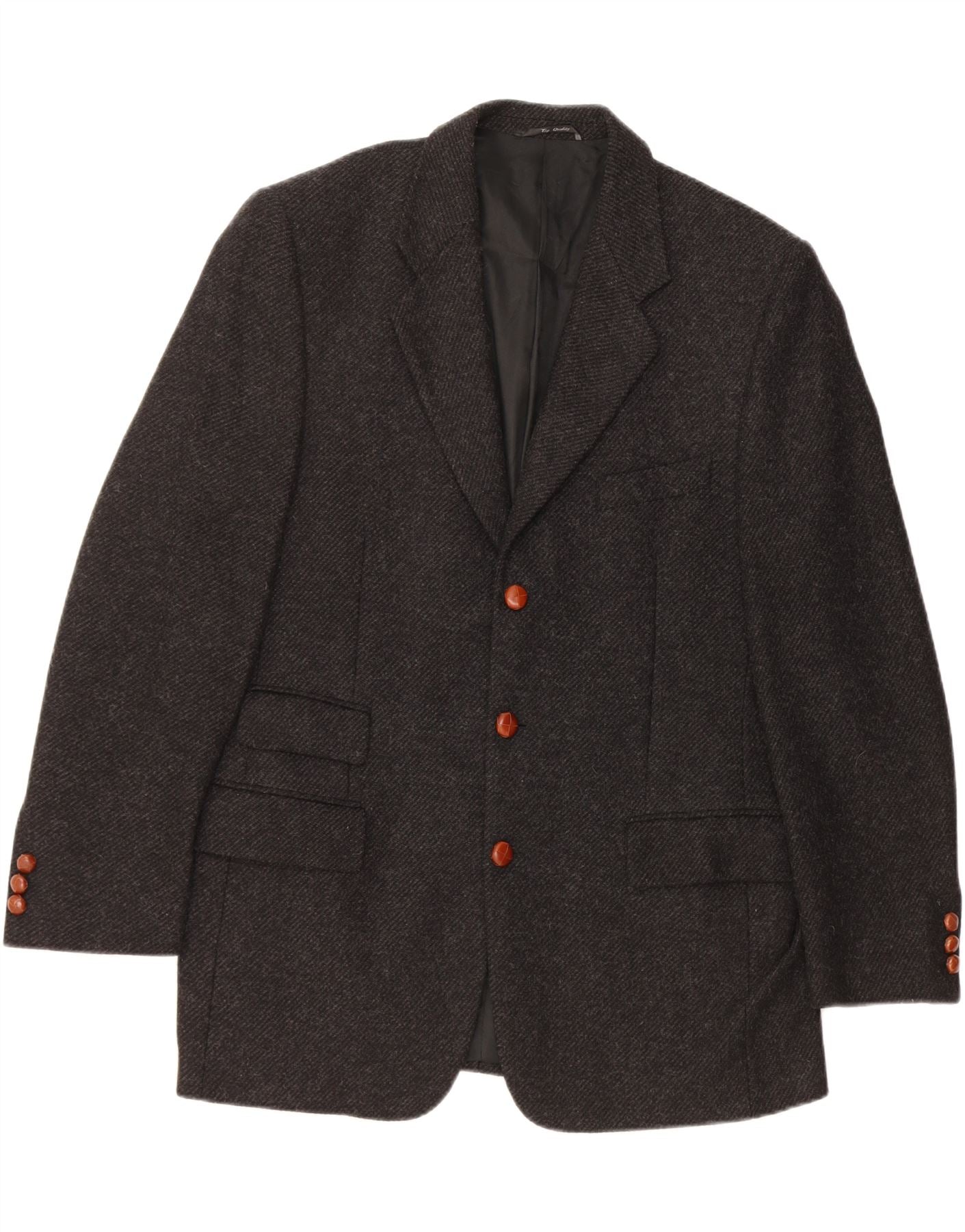 Męska marynarka zapinana na 3 guziki VINTAGE IT 50, duża, szara wełna w jodełkę