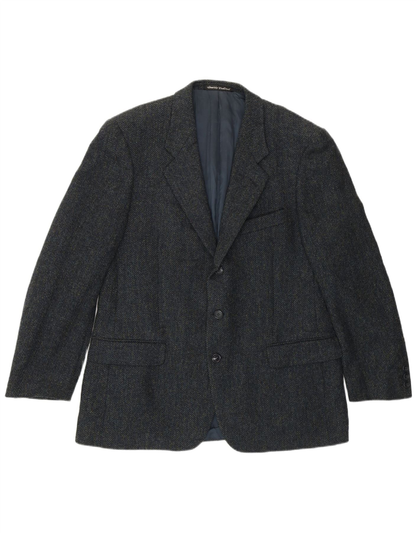 Męska marynarka zapinana na 3 guziki VINTAGE IT 50, duża granatowa w jodełkę