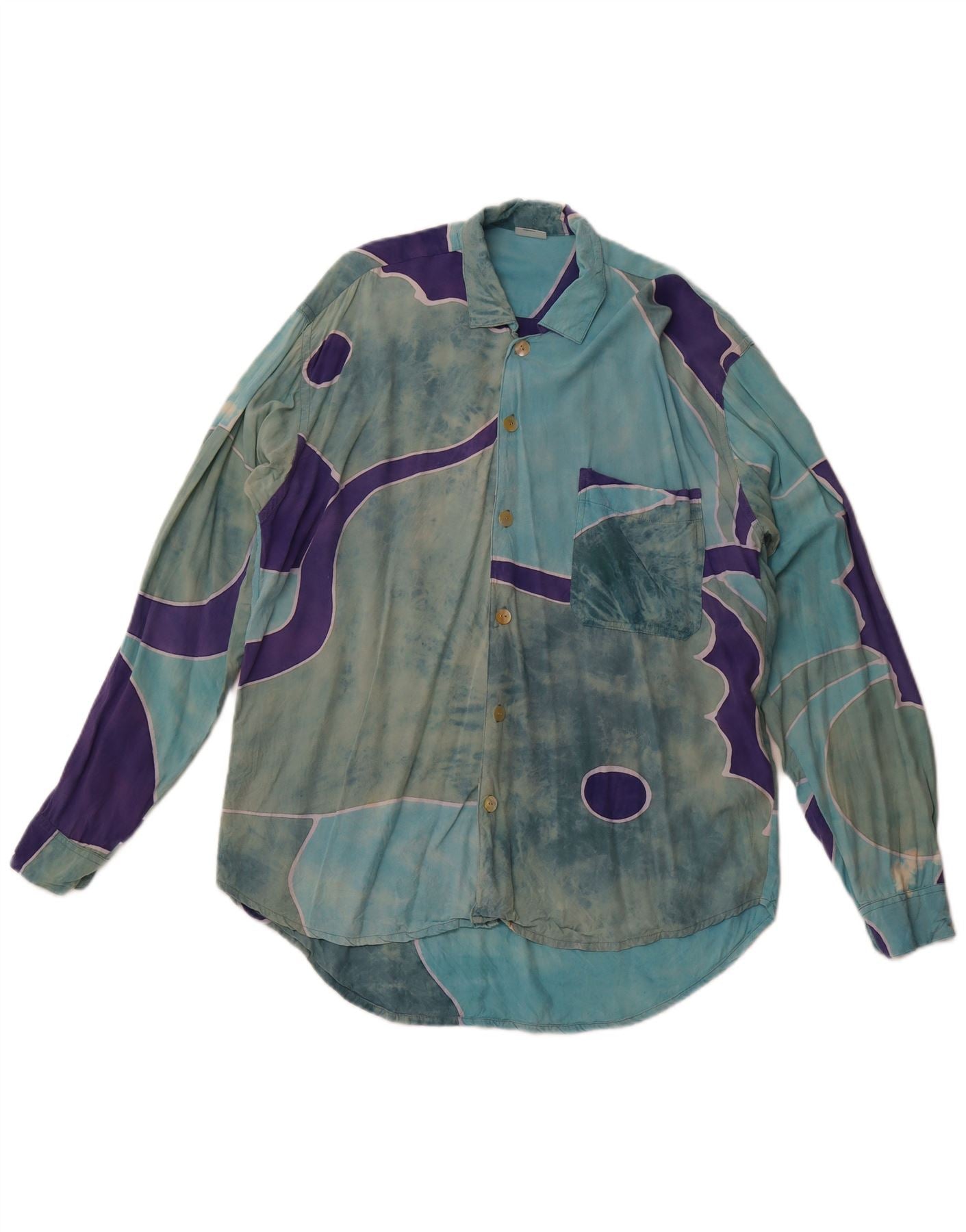 Męska koszula VINTAGE w abstrakcyjny wzór XL, niebieski sztuczny jedwab