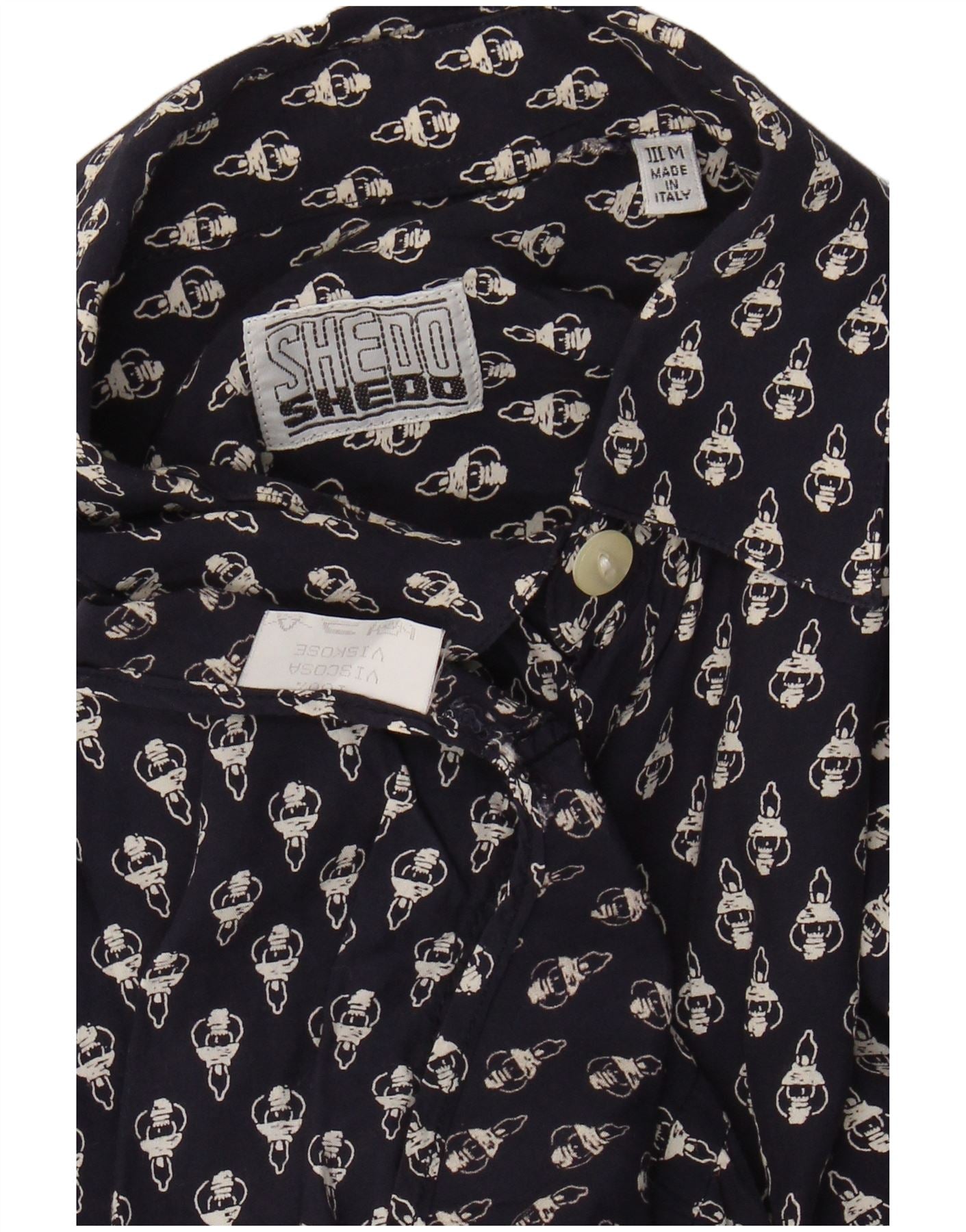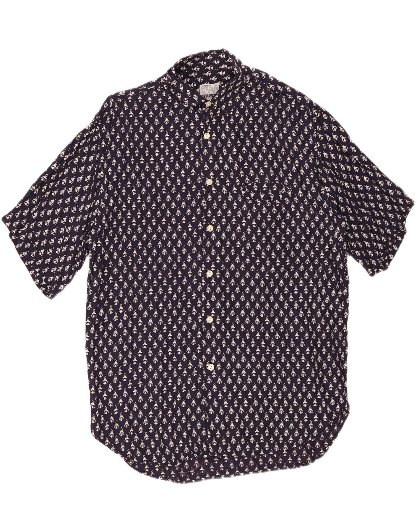 Męska koszula z krótkim rękawem VINTAGE w abstrakcyjny wzór, średni granatowy wiskoza