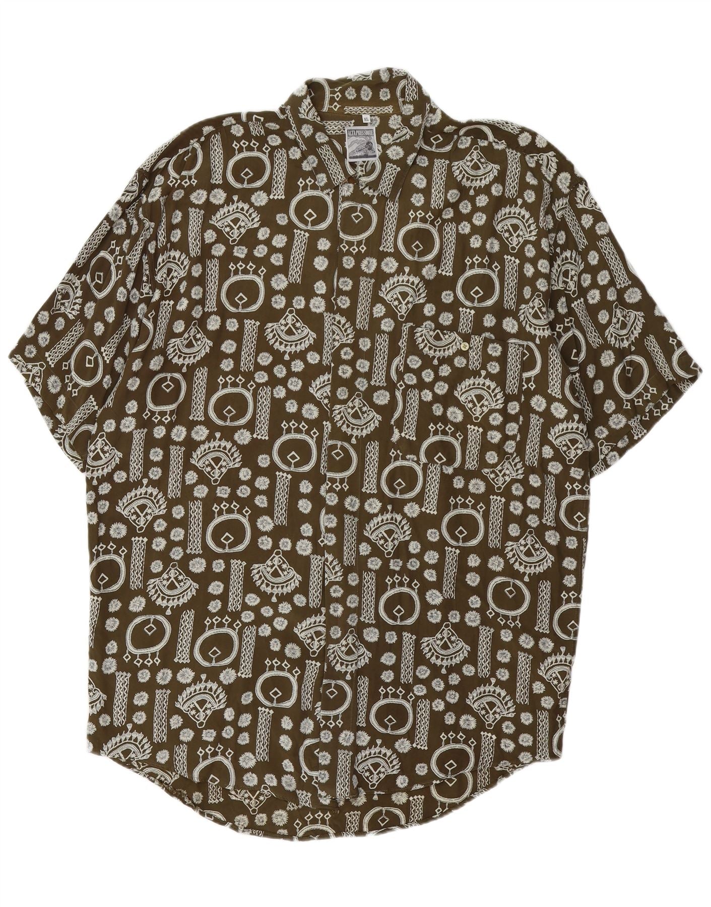 Męska koszula z krótkim rękawem w stylu vintage w abstrakcyjny wzór XL Khaki