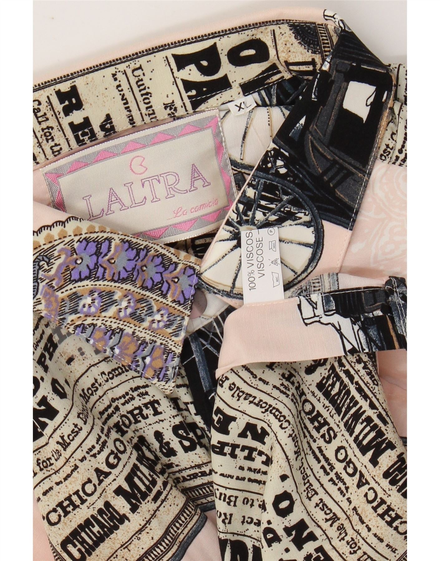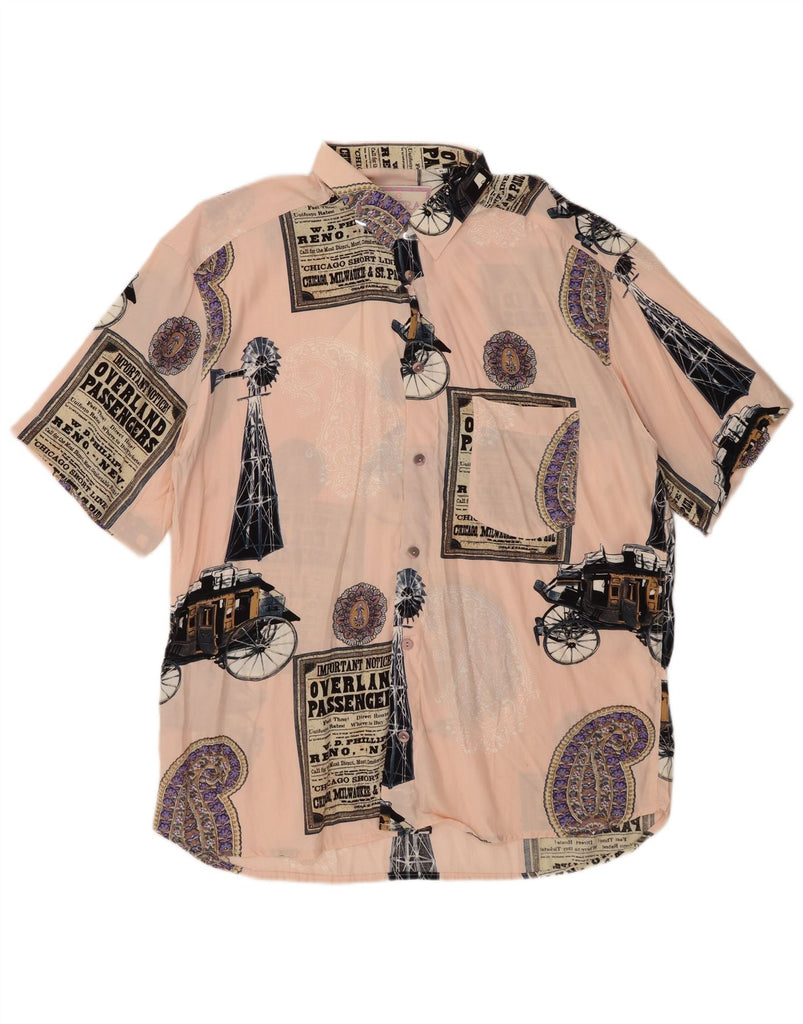 VINTAGE Męska koszula z krótkim rękawem w abstrakcyjny wzór XL Różowa patchworkowa wiskoza