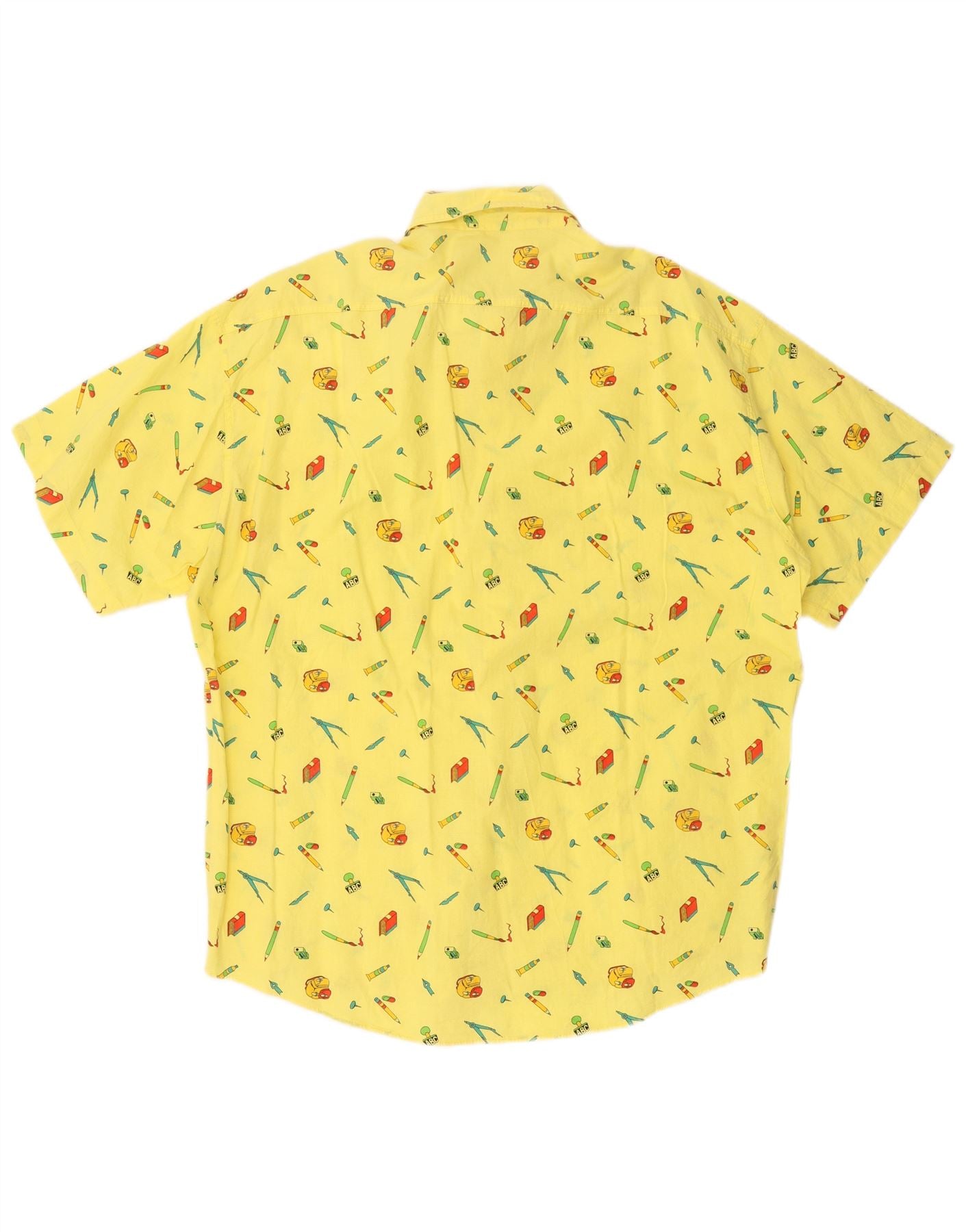 Męska koszula z krótkim rękawem VINTAGE w abstrakcyjny wzór XL, żółta bawełna
