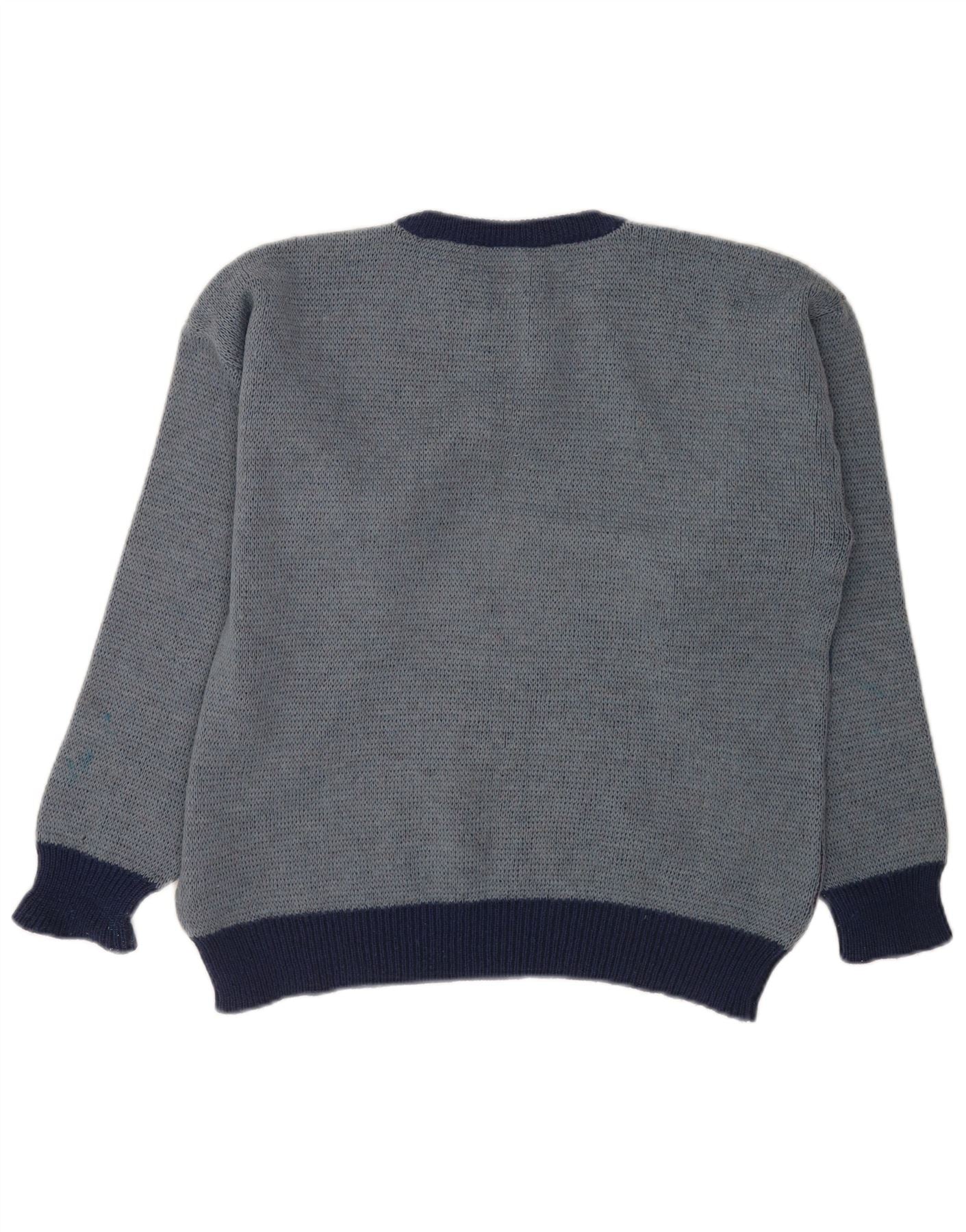 Vintage męski sweter z dekoltem w łódkę IT 52, duży niebieski geometryczny