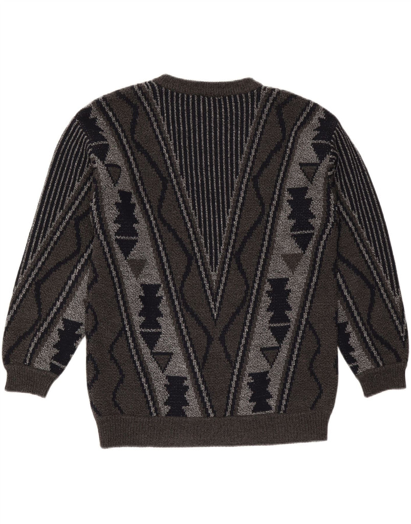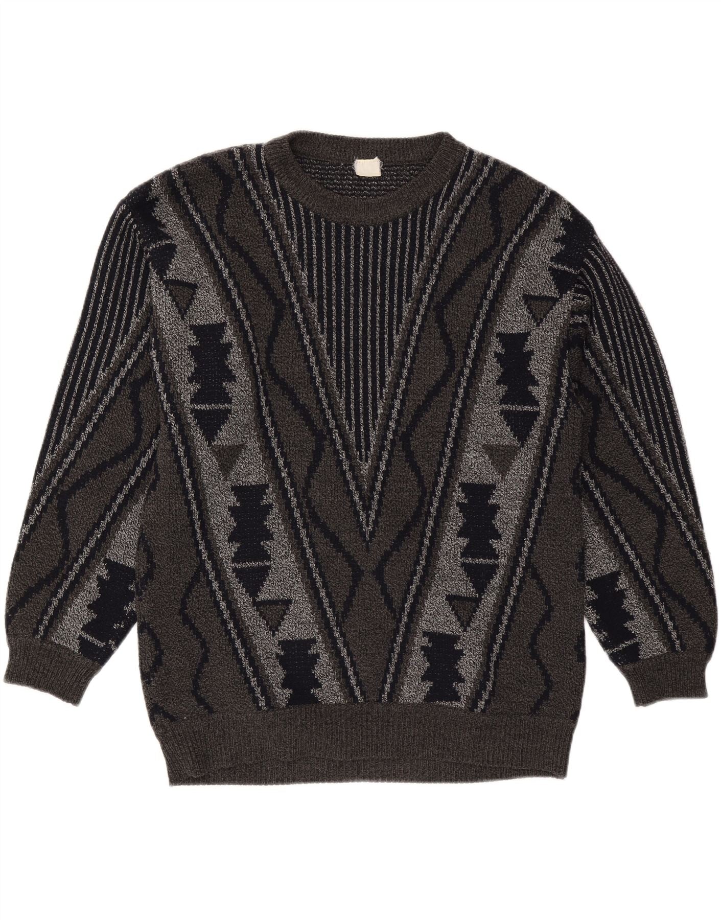 Męski sweter z dekoltem w łódkę w stylu VINTAGE, duży, szary, geometryczny