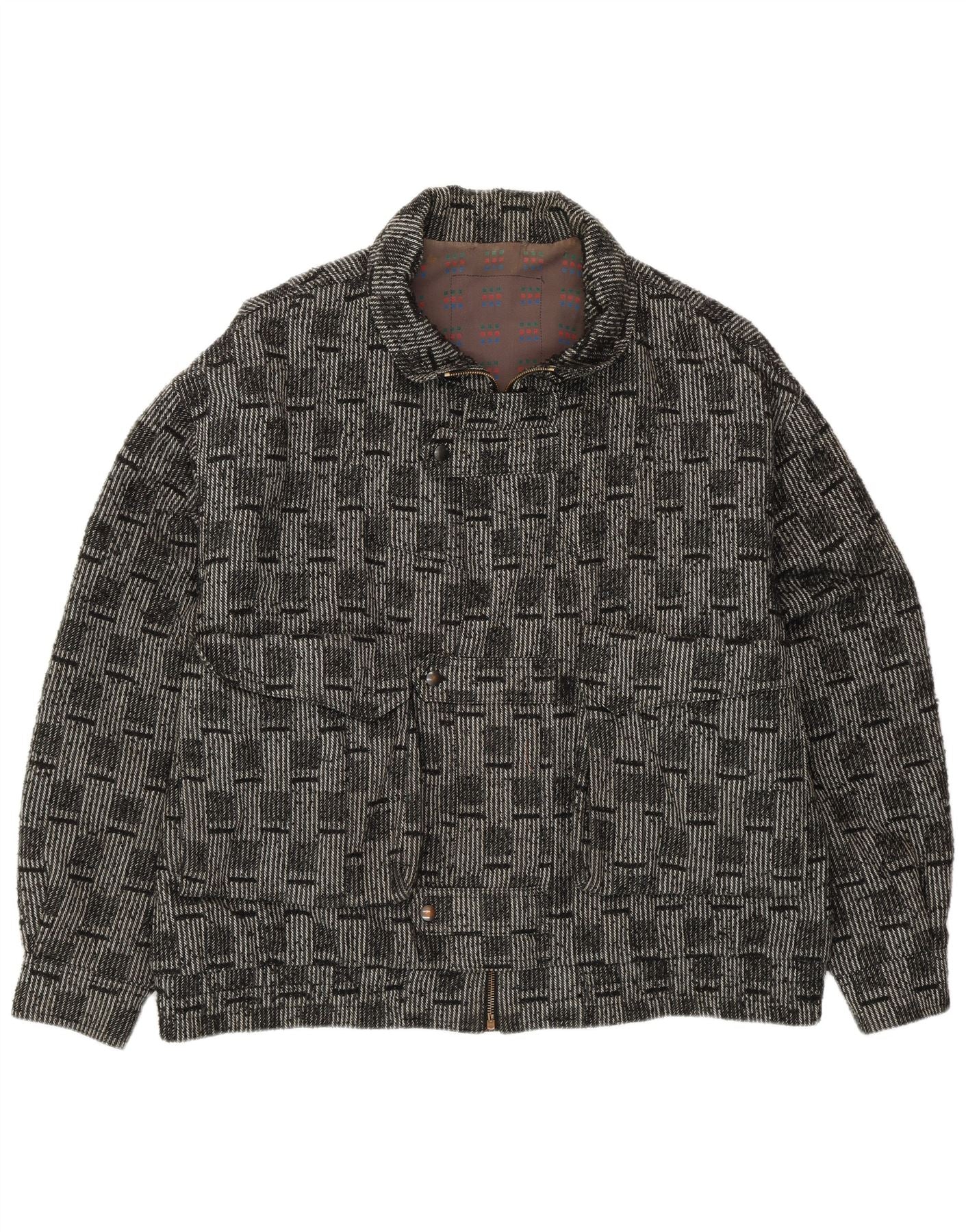 Męska kurtka bomberka VINTAGE IT 52 XL szara wełniana kratka