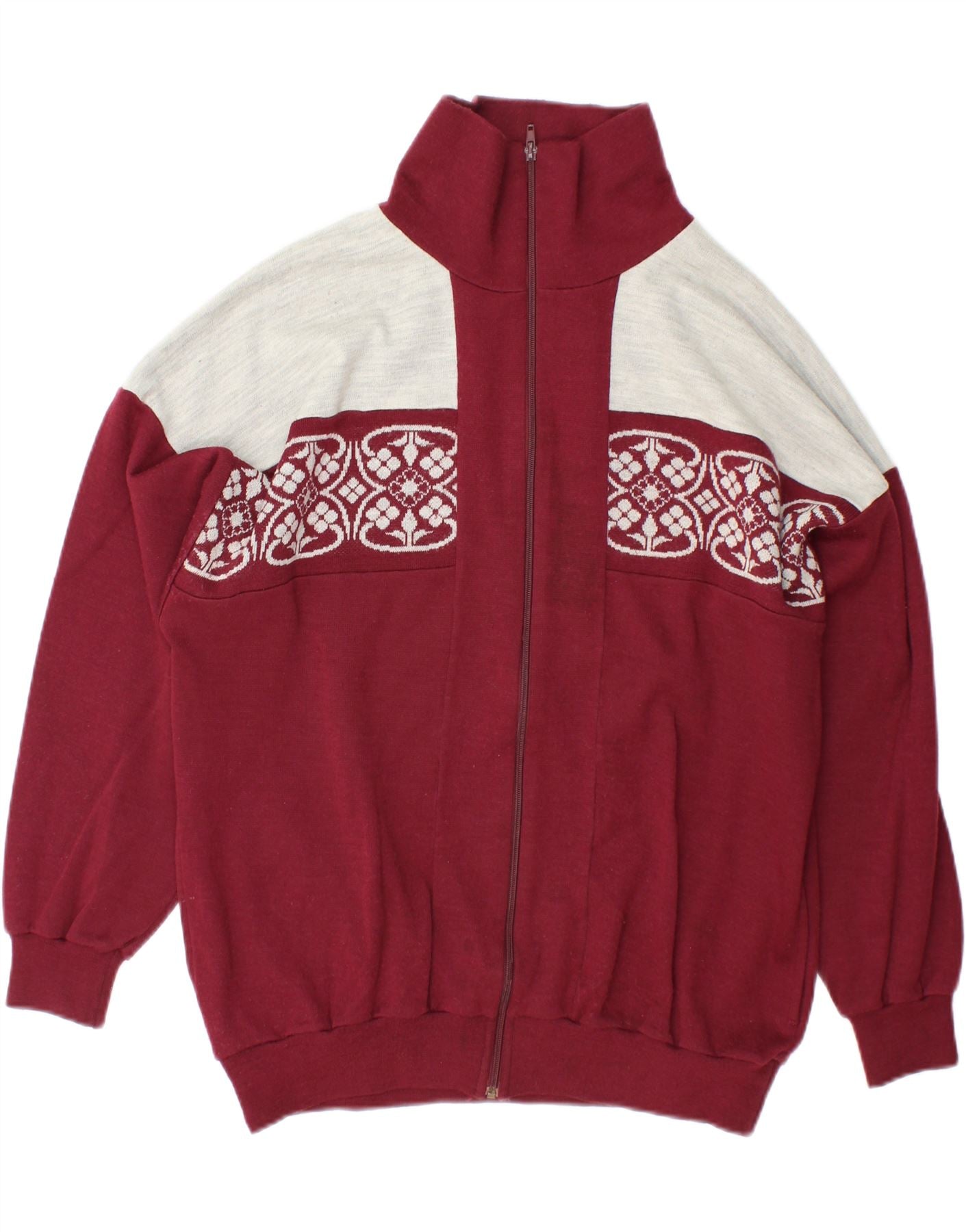 Męski sweter rozpinany VINTAGE, duży, bordowy, geometryczny akryl