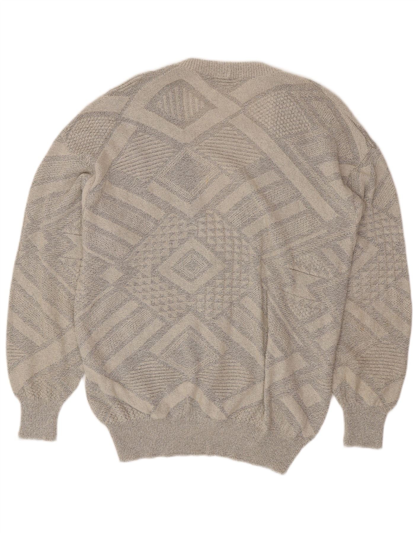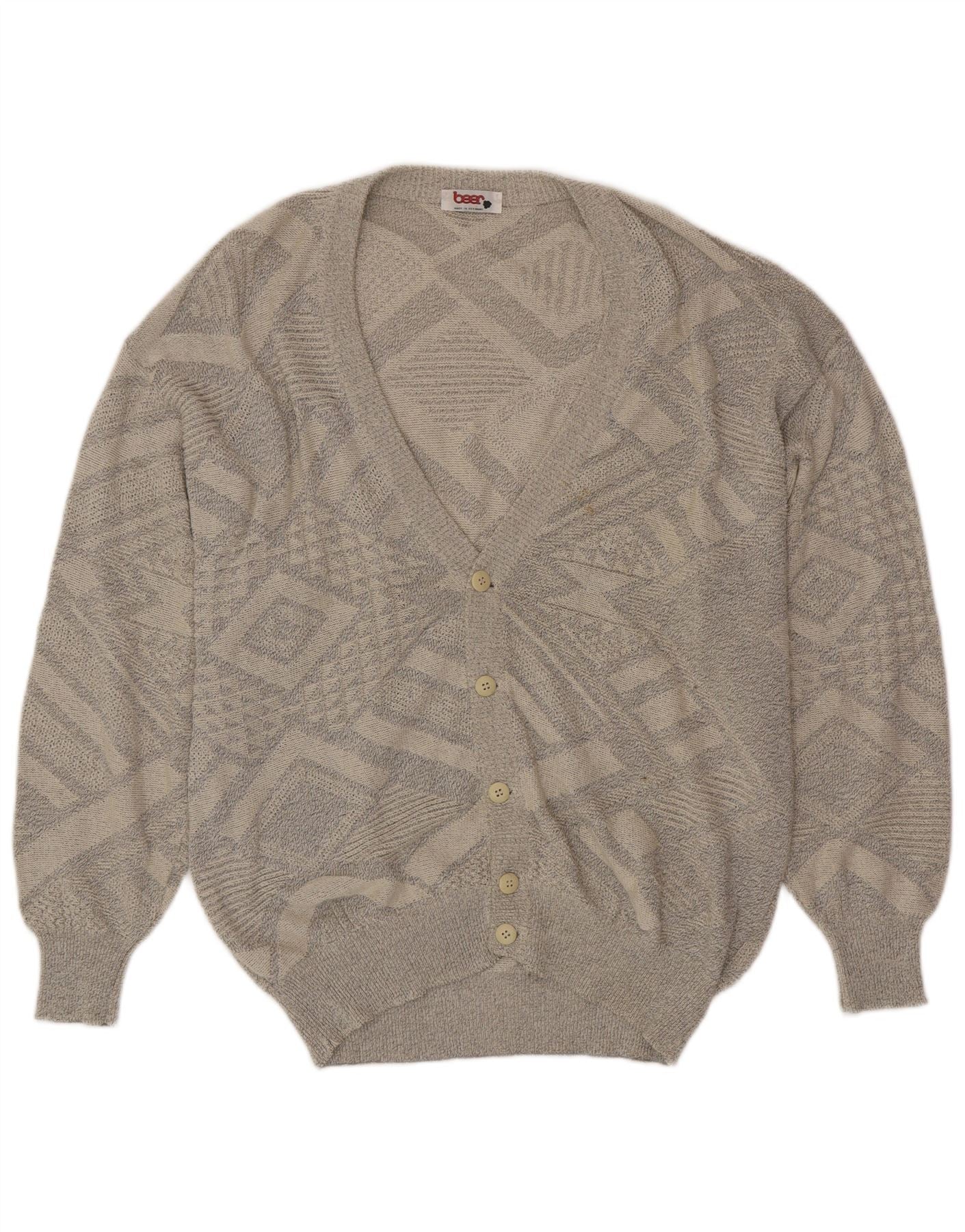 Męski sweter rozpinany VINTAGE, duży, szary, geometryczny, bawełniany