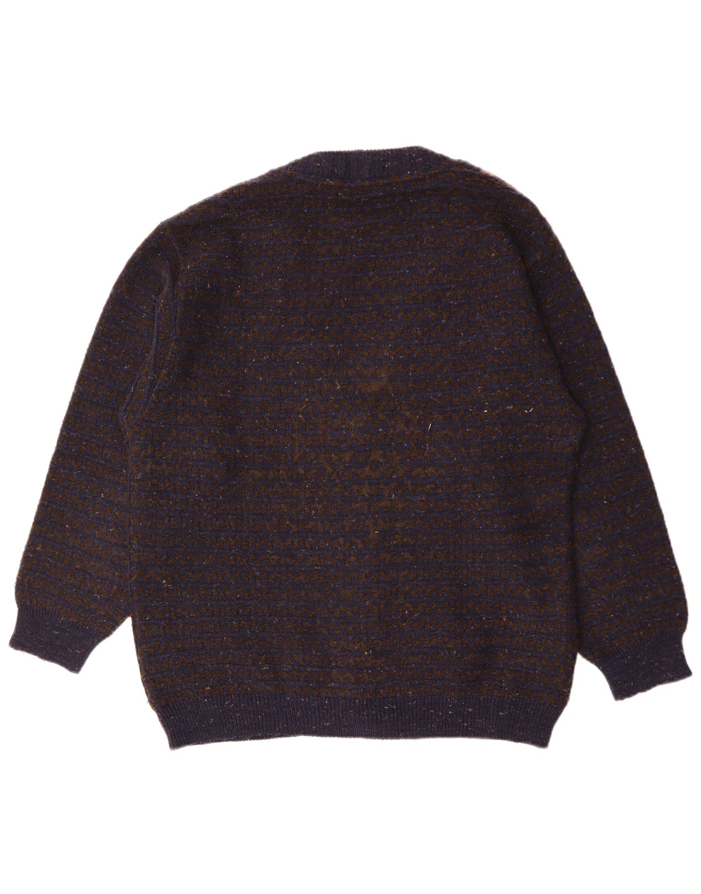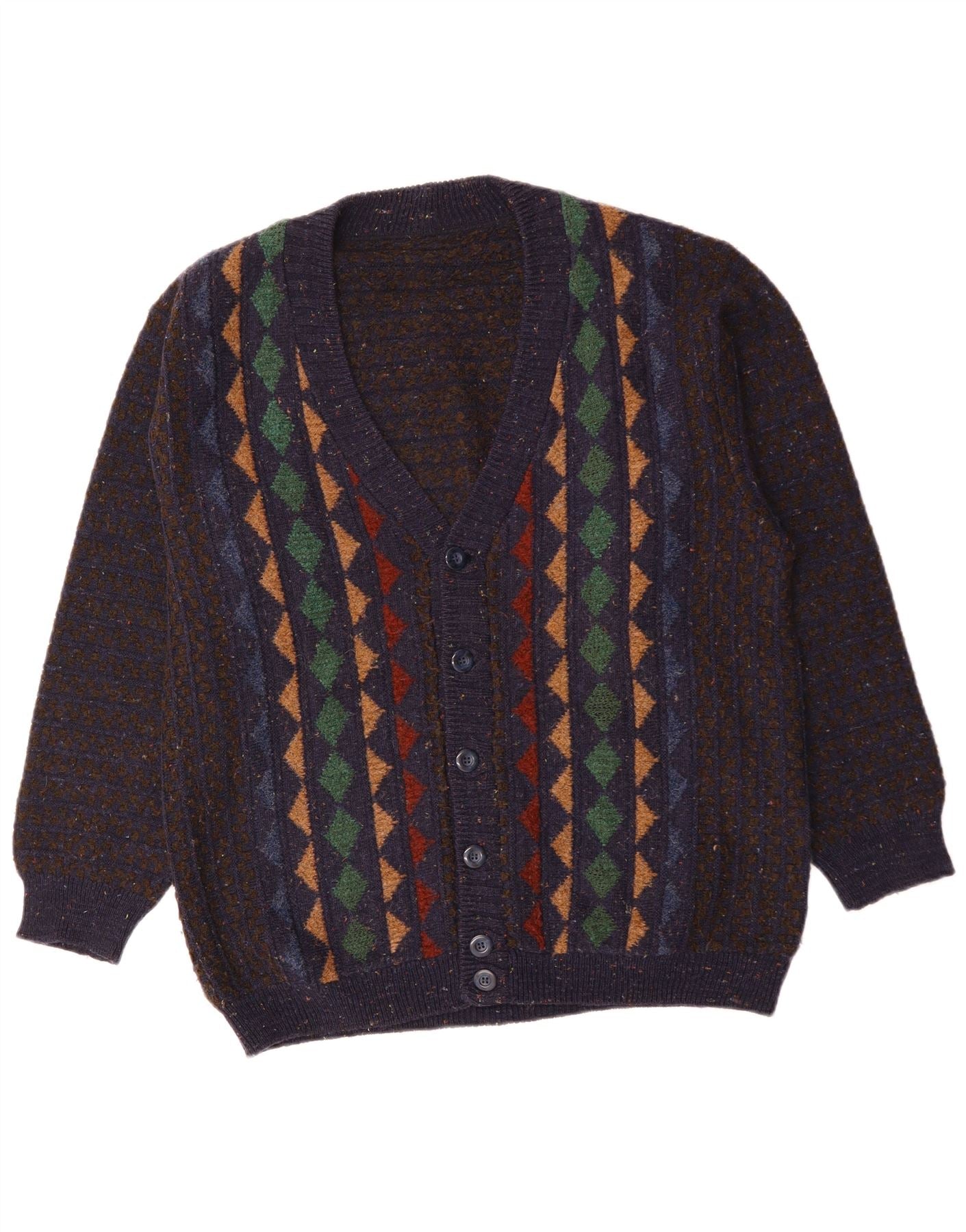 Męski sweter rozpinany VINTAGE, duży, granatowy, argyle/diamentowa wełna merynosów