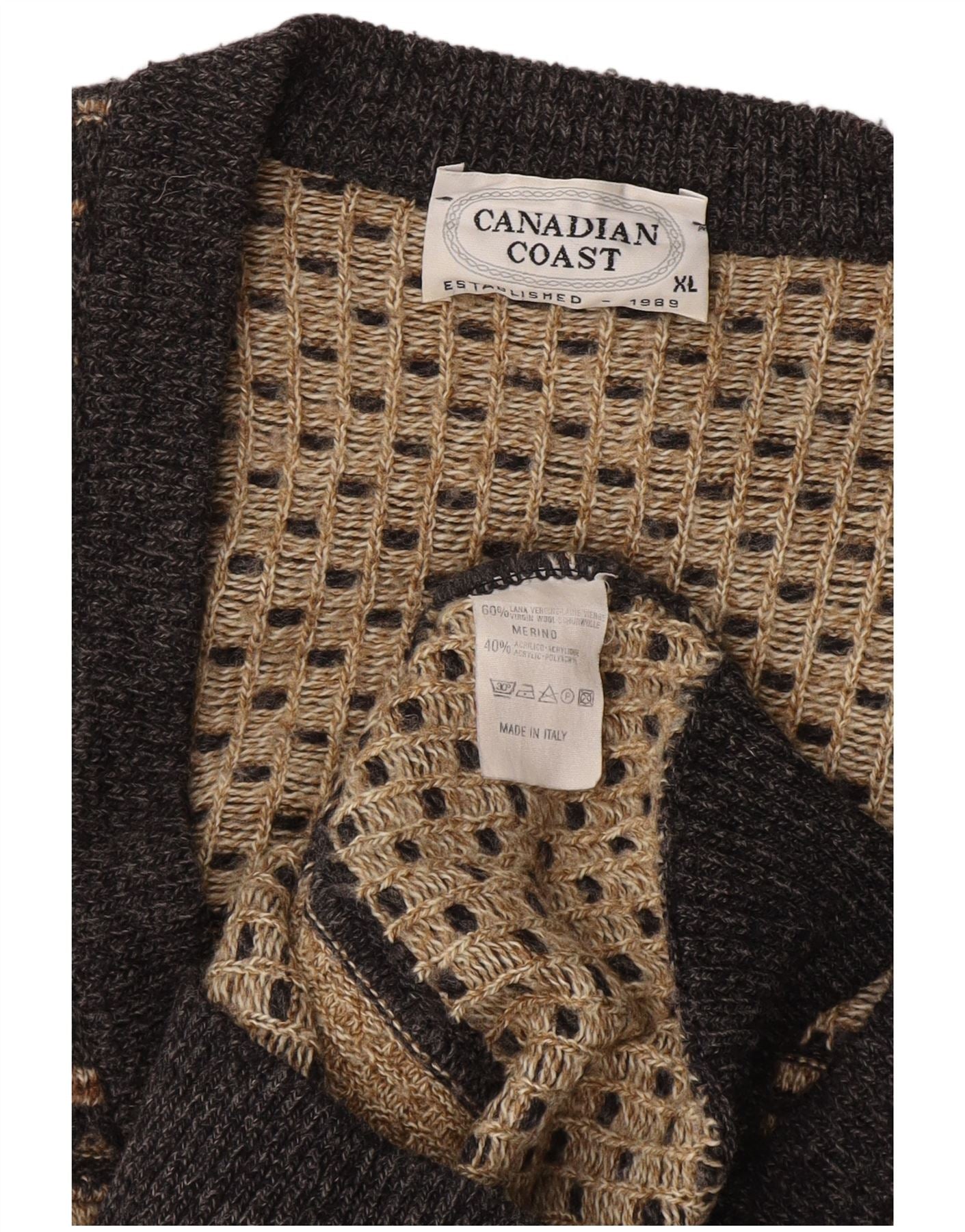Męski sweter rozpinany VINTAGE XL, szara wełniana w paski