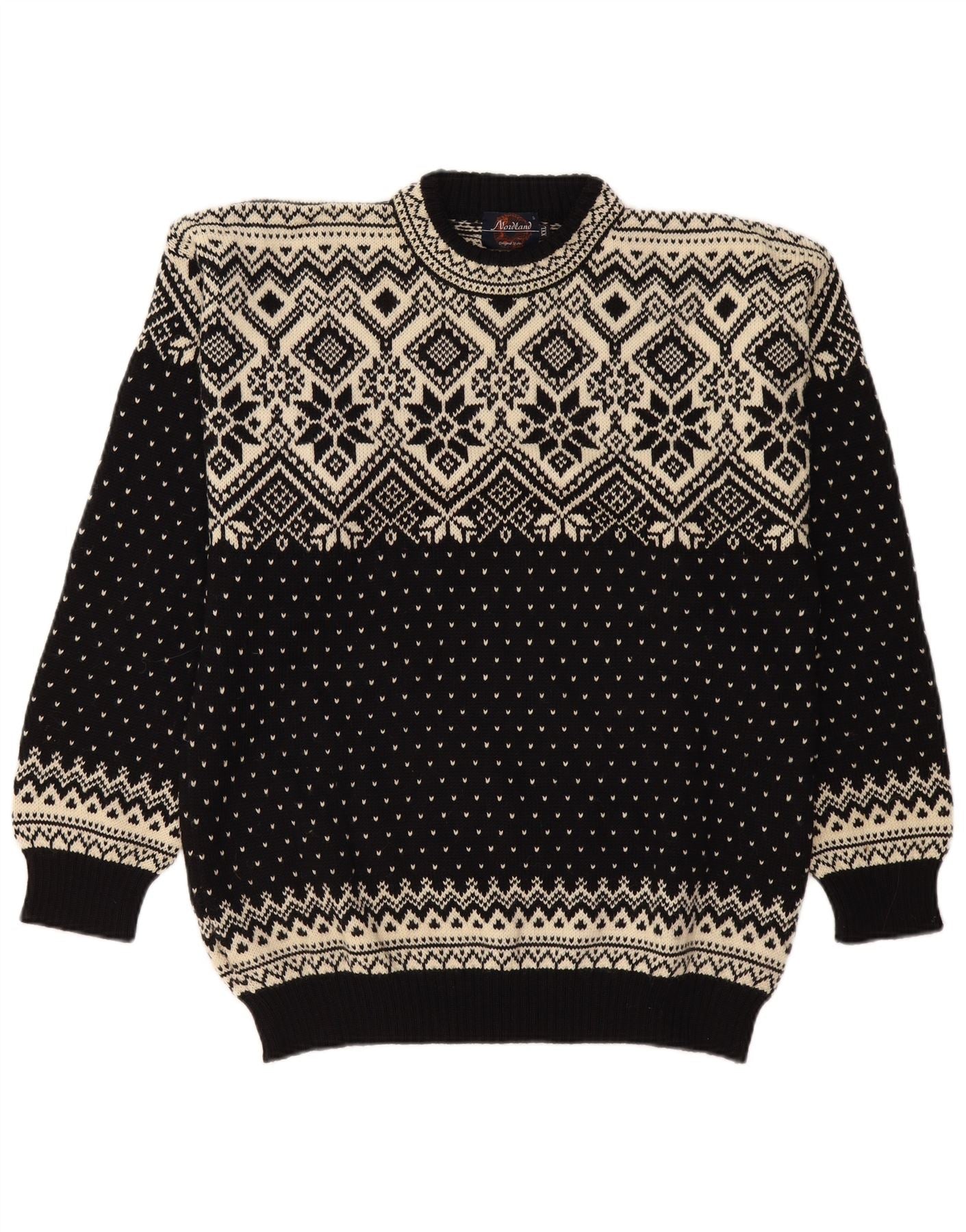 Vintage męski sweter z okrągłym dekoltem 2XL, czarny Fair Isle Virgin Wool