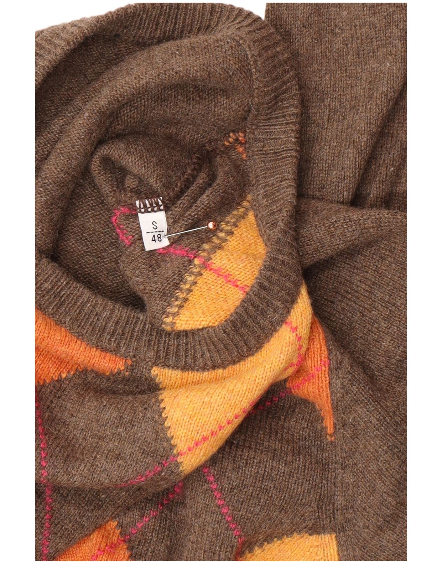 Męski sweter z okrągłym dekoltem w stylu VINTAGE IT 48 Mały brązowy Argyle/Diament
